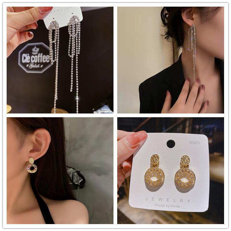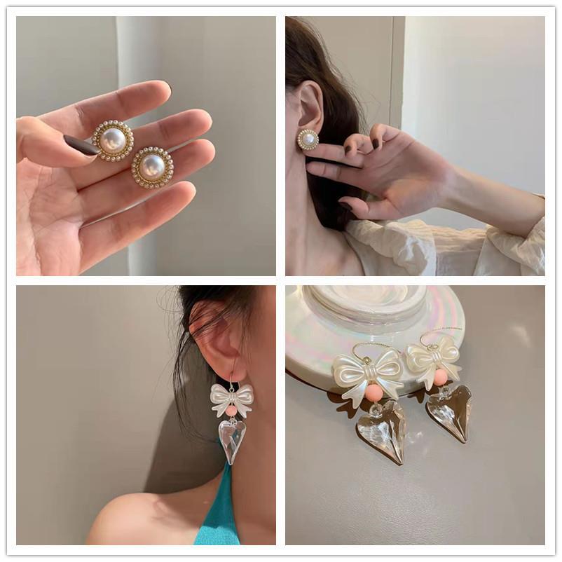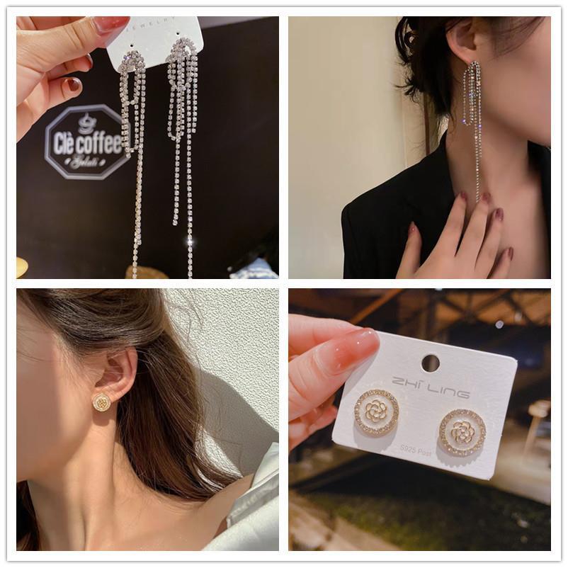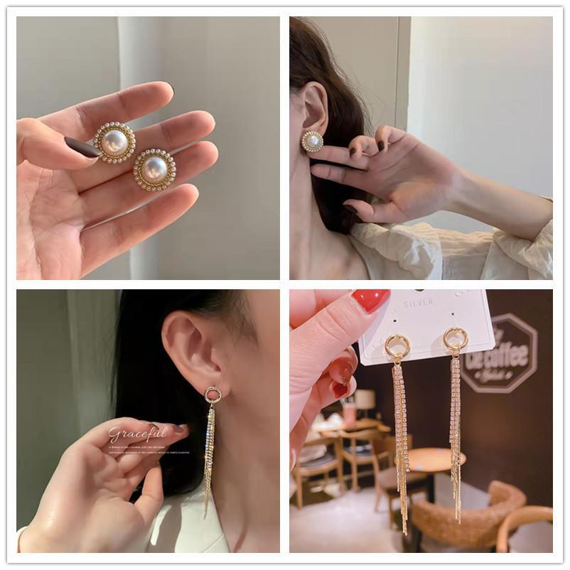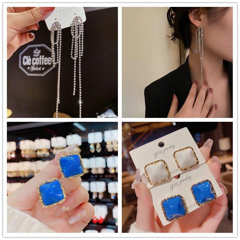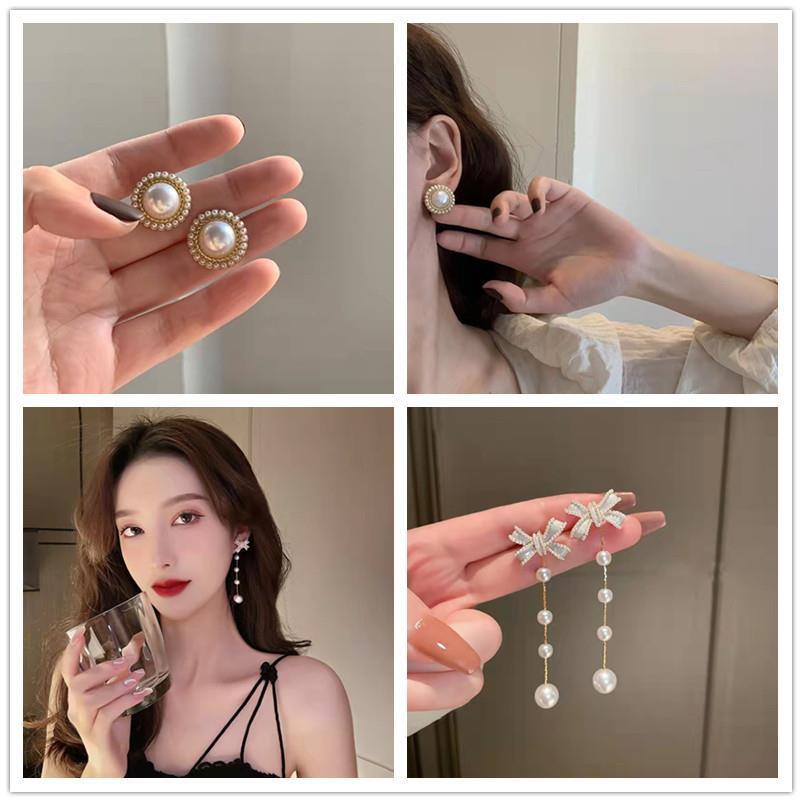 2022 new black and white square earrings Dongdaemun fashion earrings personality temperament C-shaped diamond-studded pearl earrings