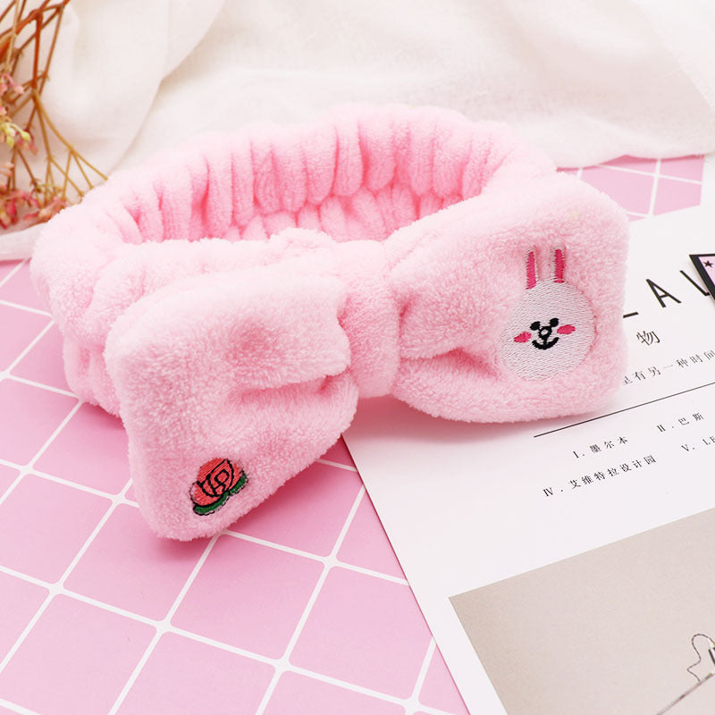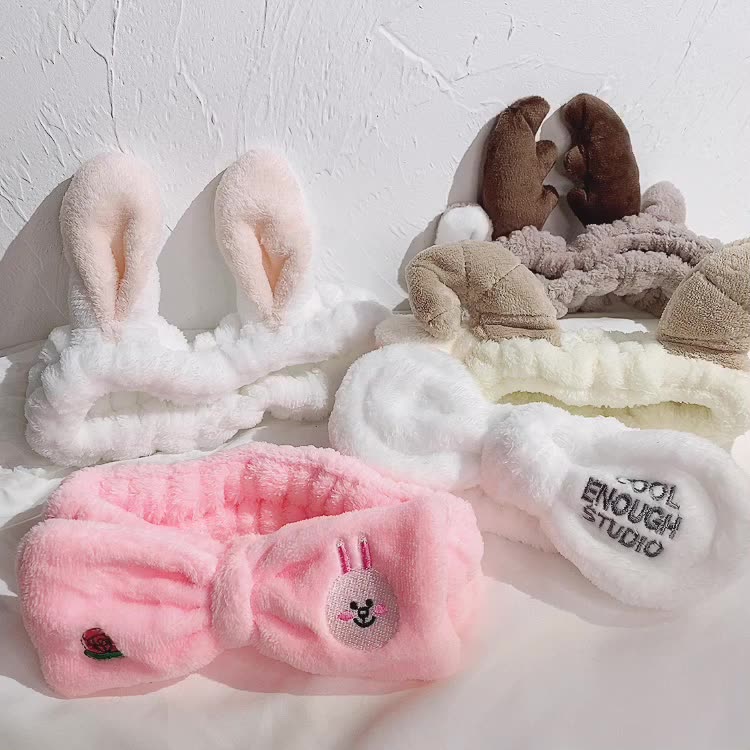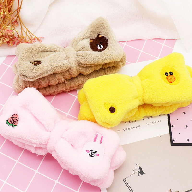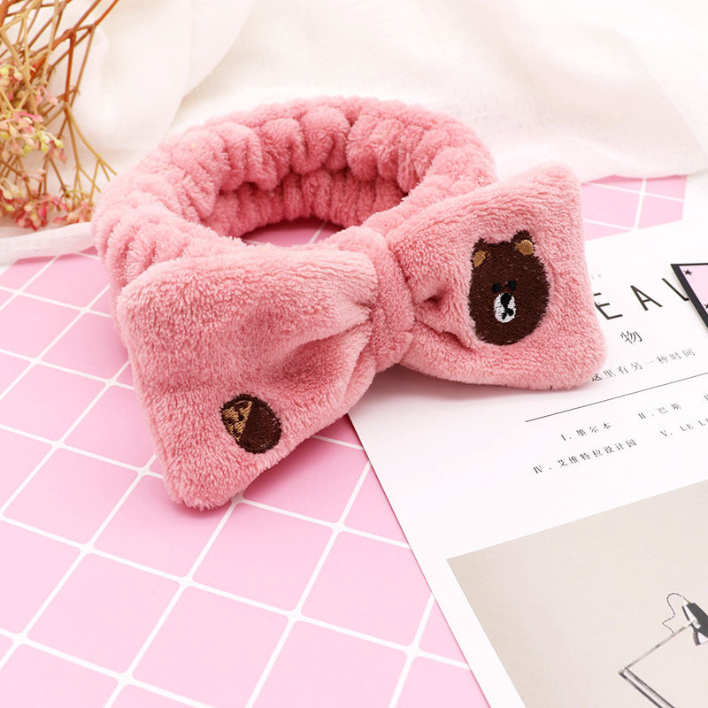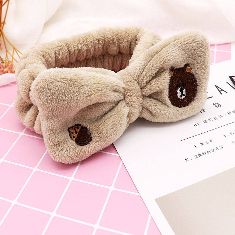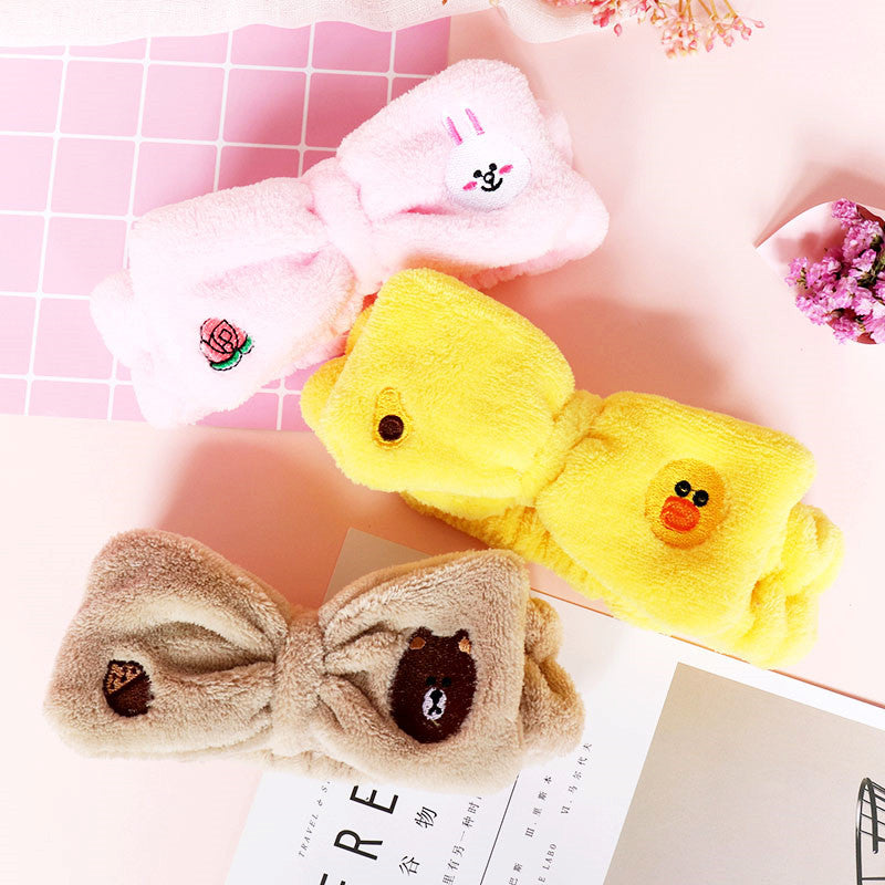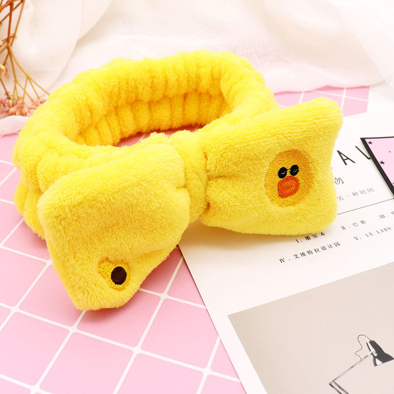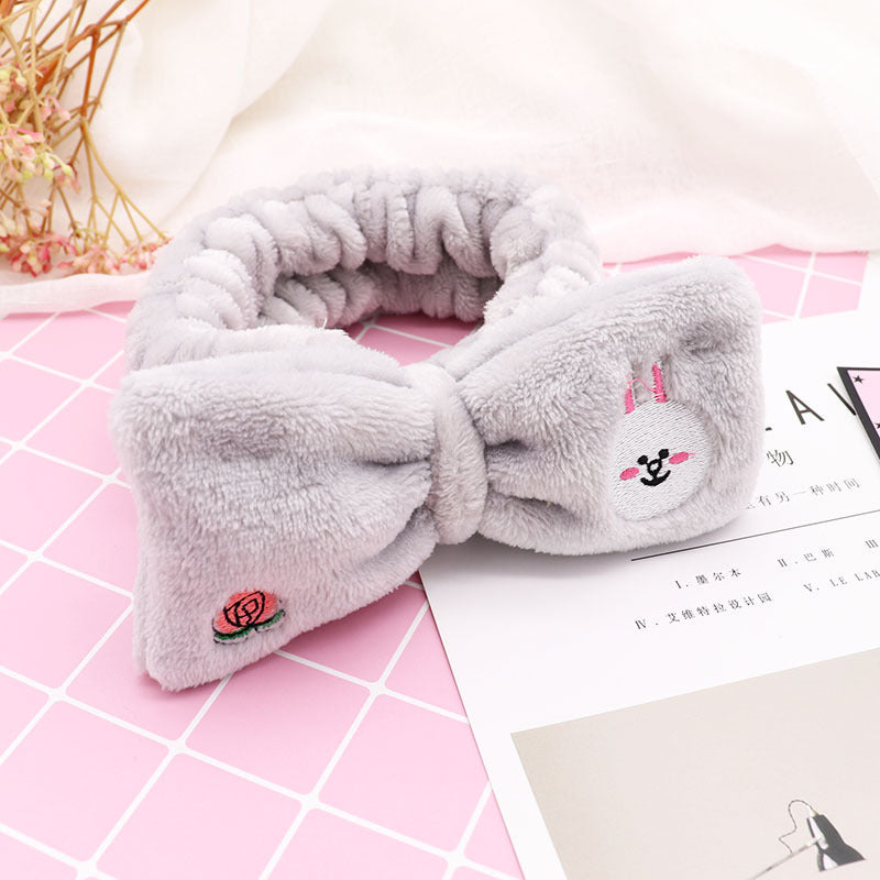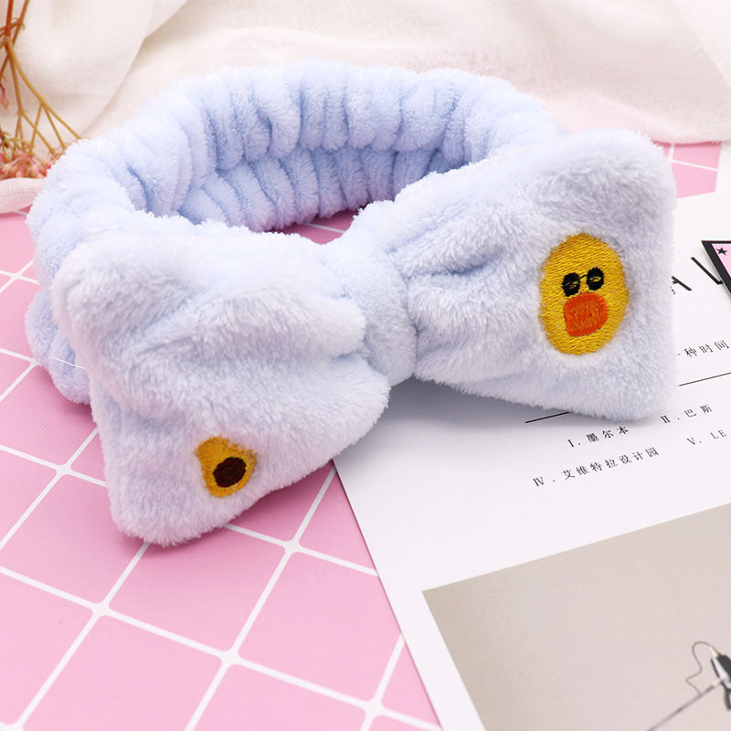 2022 New Bow Knot Embroidered Bear Bunny Duck Duck Plush Hair Band Cute Cartoon Face Washing Headdress for Women