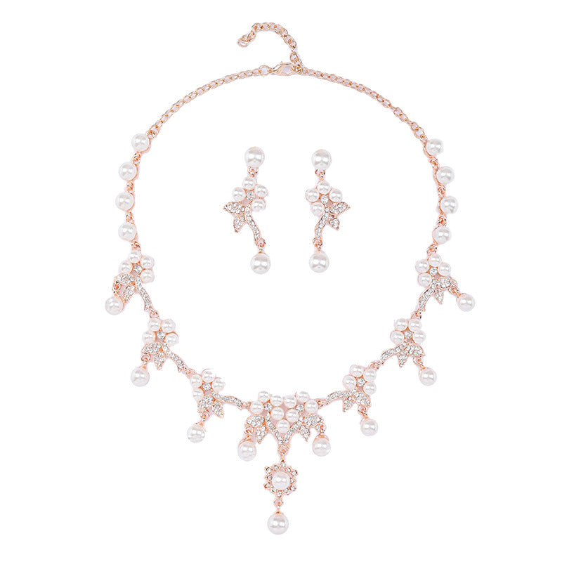 2022 New Branch Shaped European and American Pearl Necklace Set Ethnic Style Retro Jewelry Clavicle Chain Bridal Dress