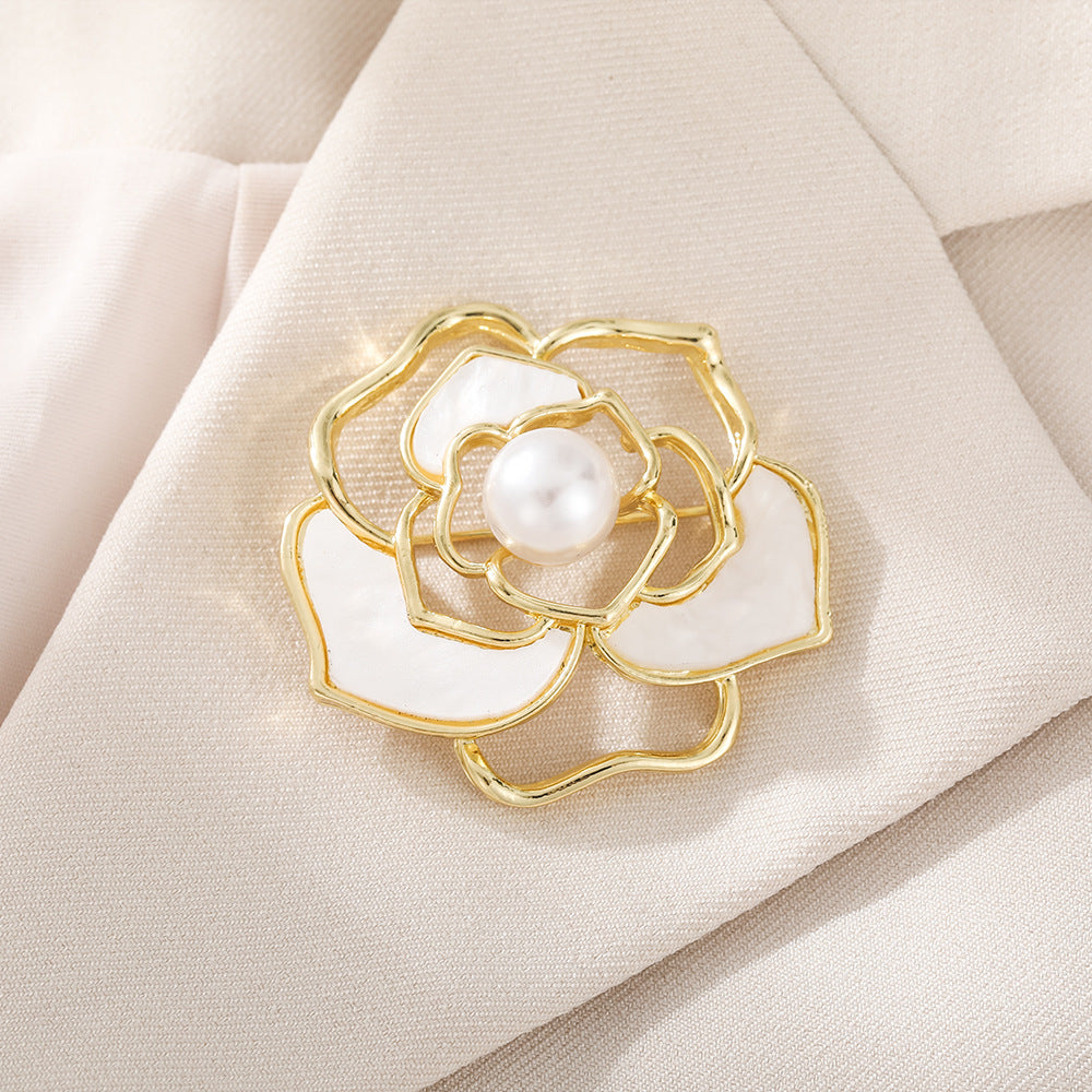 2022 new brooch women's pearl camellia pearl luxury ethnic style brooch summer high-end suit accessories