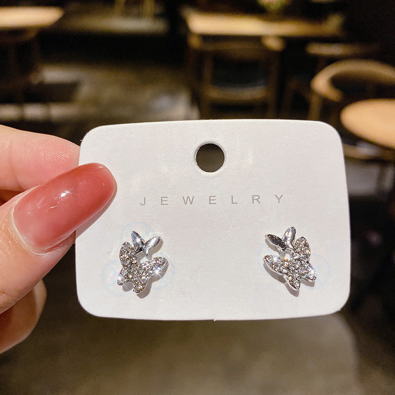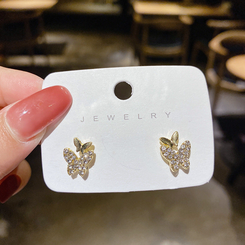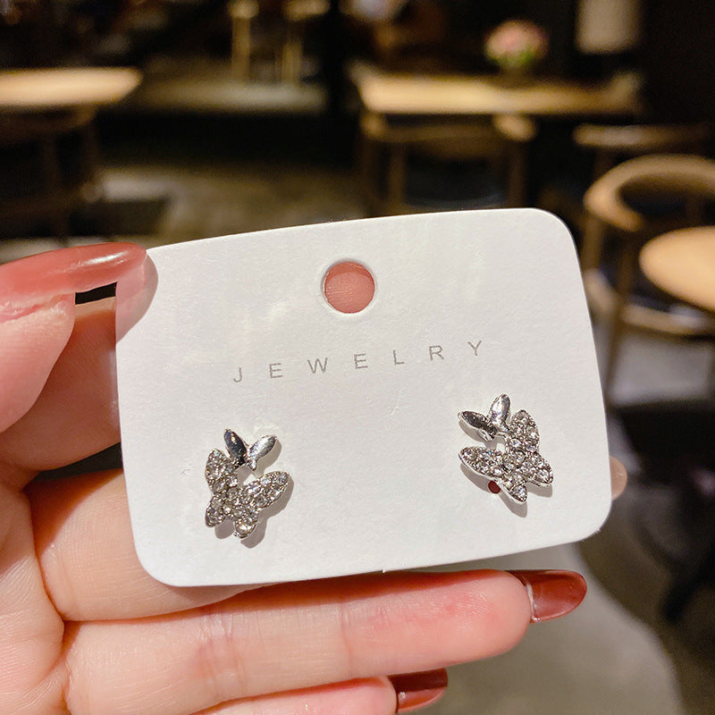 2022 new butterfly earrings s925 silver needle full of diamonds simple female Korean version small temperament earrings jewelry