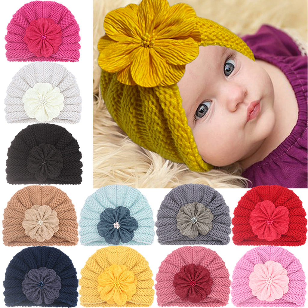 2022 new children's autumn and winter warm knitted hat baby fashion match flower wool hat hat