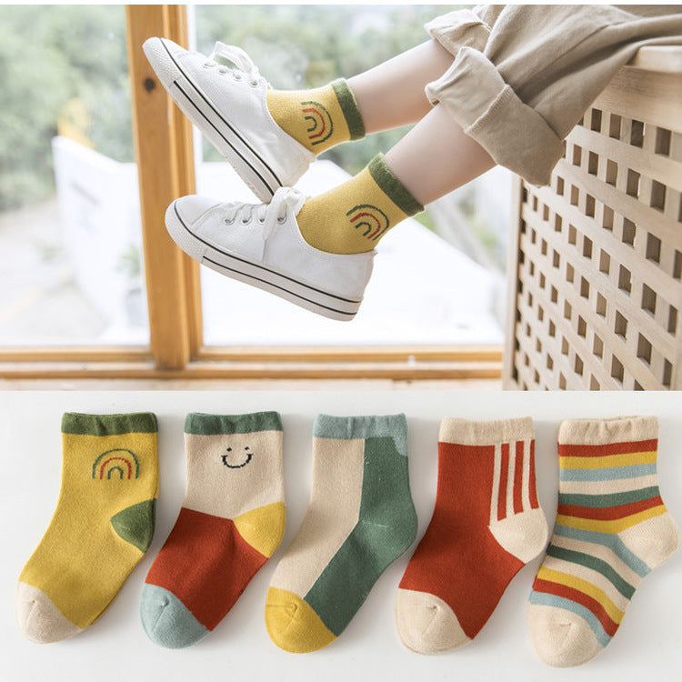 2022 new children's socks autumn and winter medium tube cartoon boys and girls students autumn and winter medium and large children's long tube socks