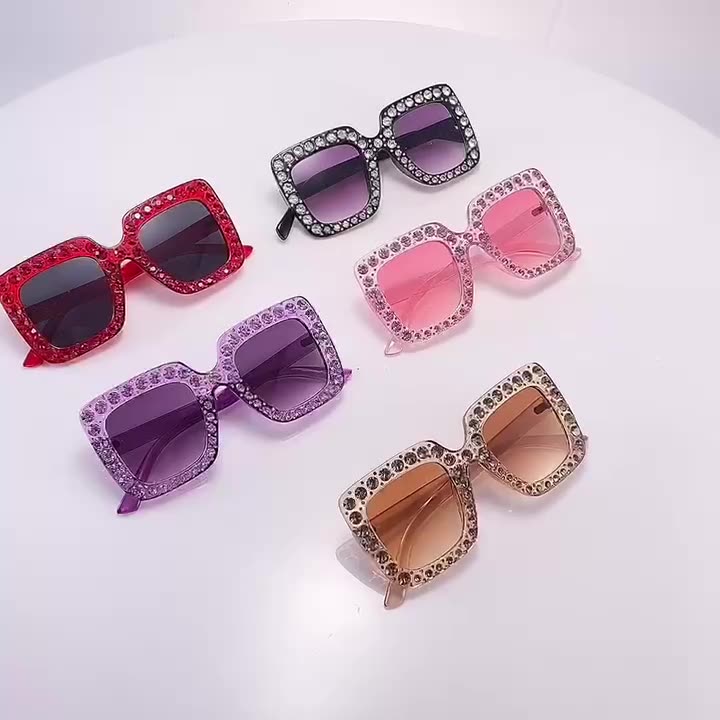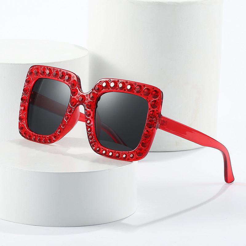 2022 New Children's Sunglasses Fashion Square Frame Diamond Sunglasses Korean Version Rhinestone Ocean Film Children's Sunglasses