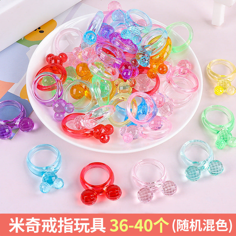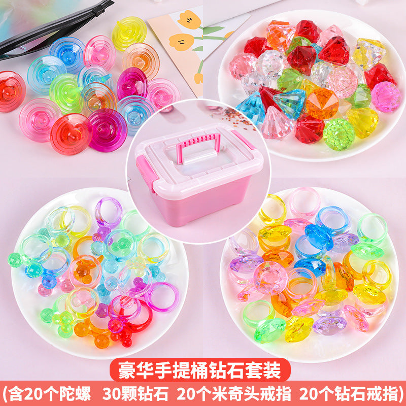 color : 20 colorful spinning tops, 65 colorful spinning tops, 30 big gemstone rings [in bags], 40 Mickey ring sets, luxury carrying bucket diamond set