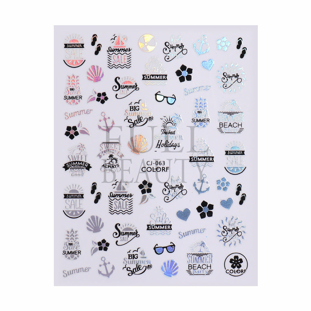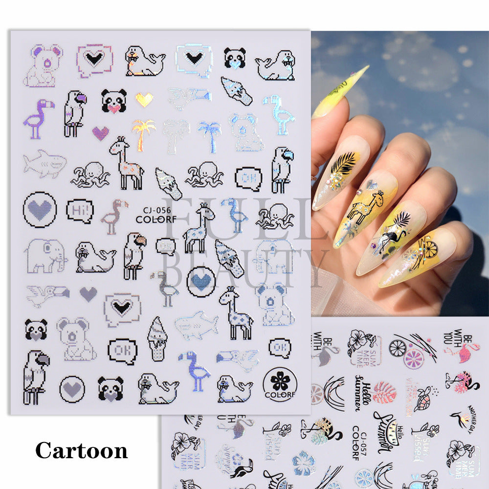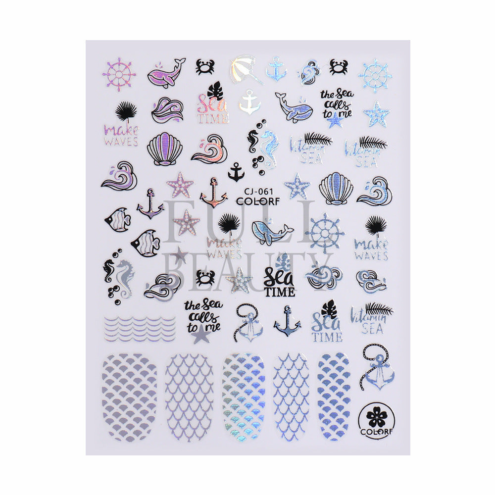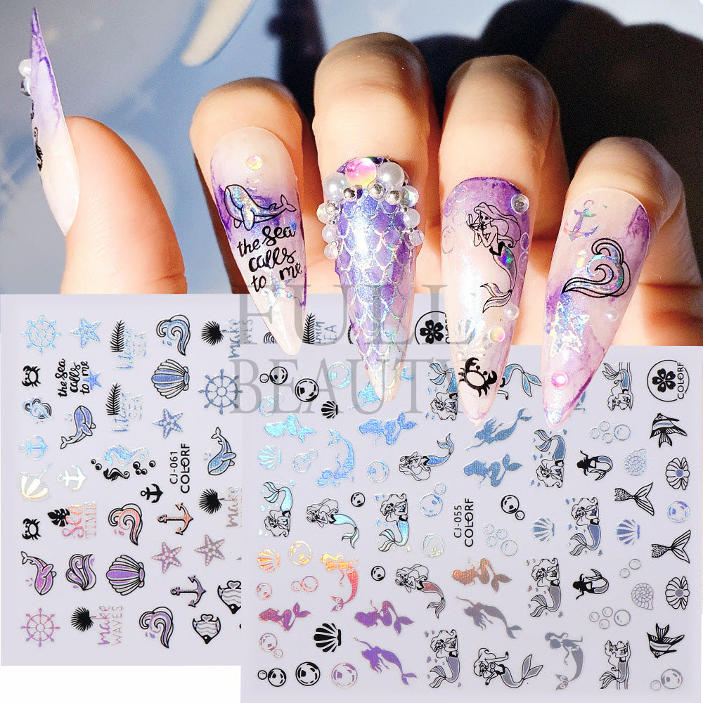 2022 new cross-border manicure sticker summer cartoon marine animal plant flower laser color adhesive sticker