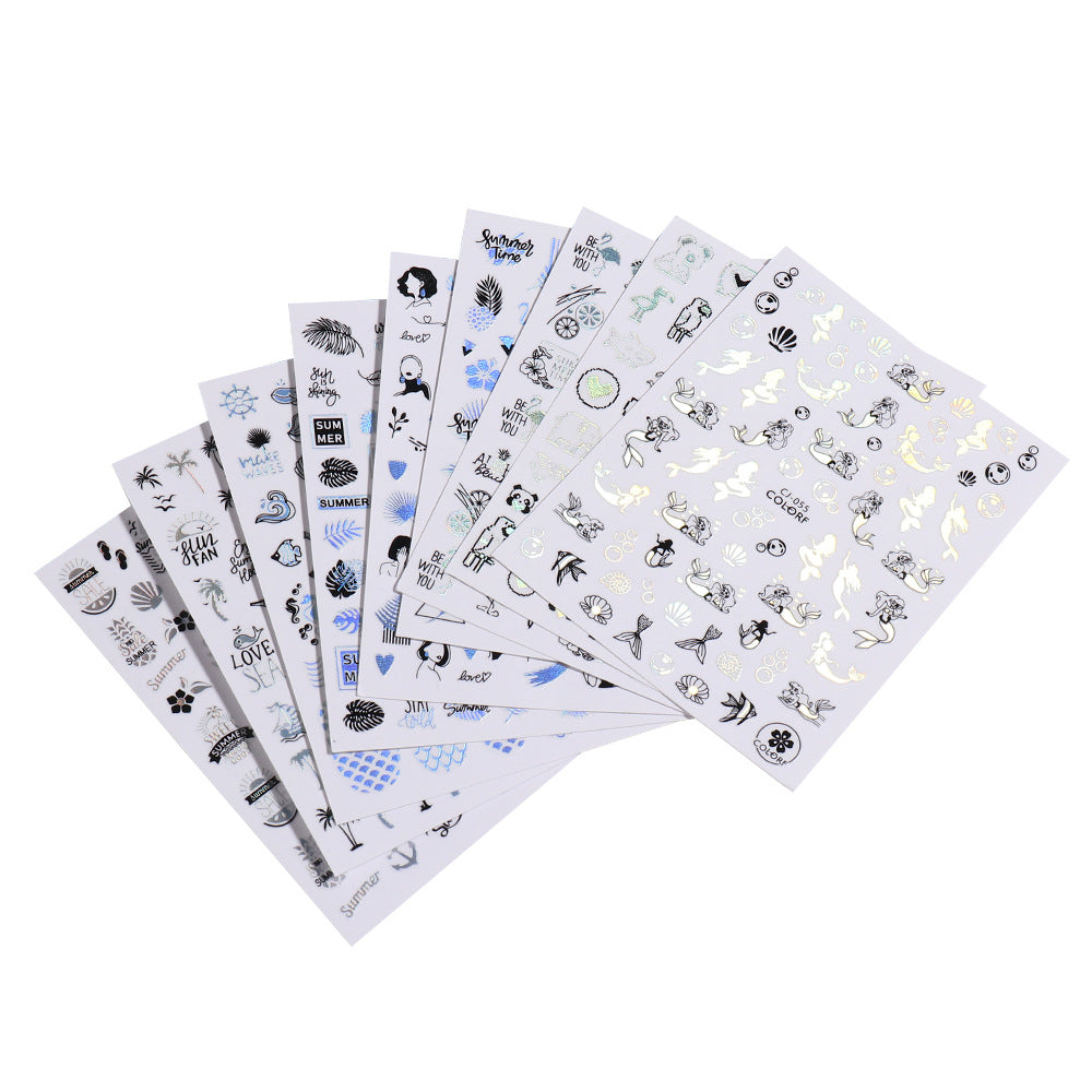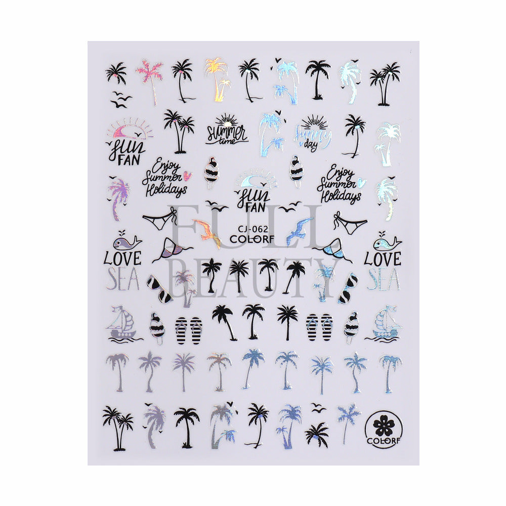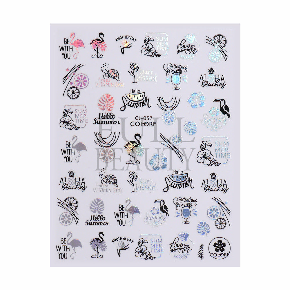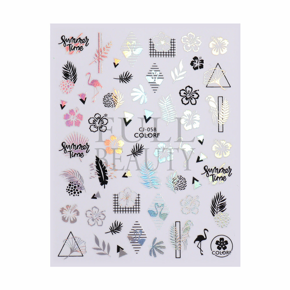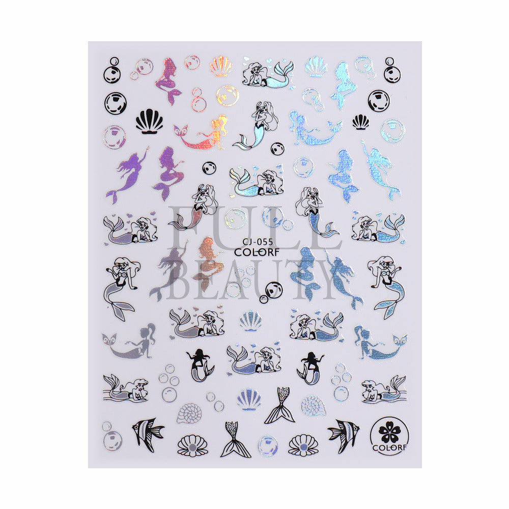 2022 new cross-border manicure sticker summer cartoon marine animal plant flower laser color adhesive sticker