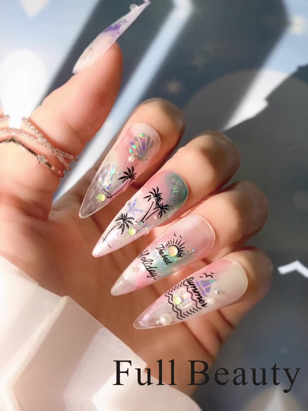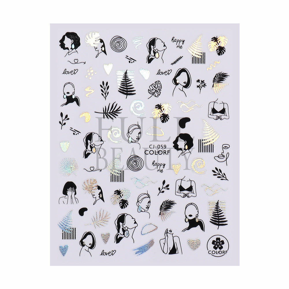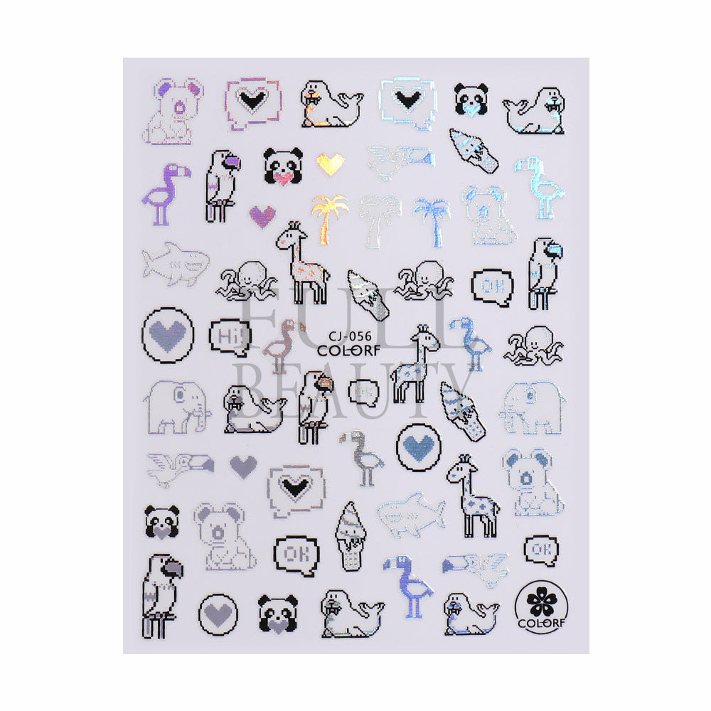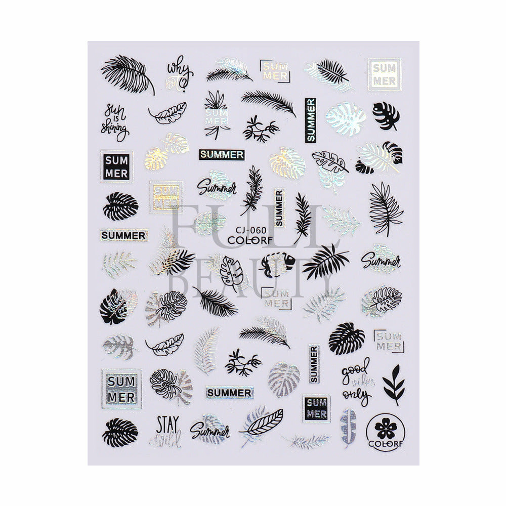 2022 new cross-border manicure sticker summer cartoon marine animal plant flower laser color adhesive sticker