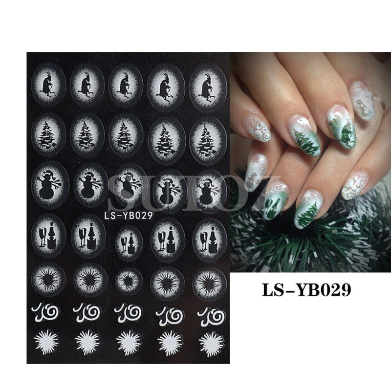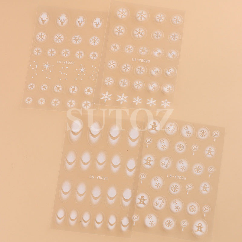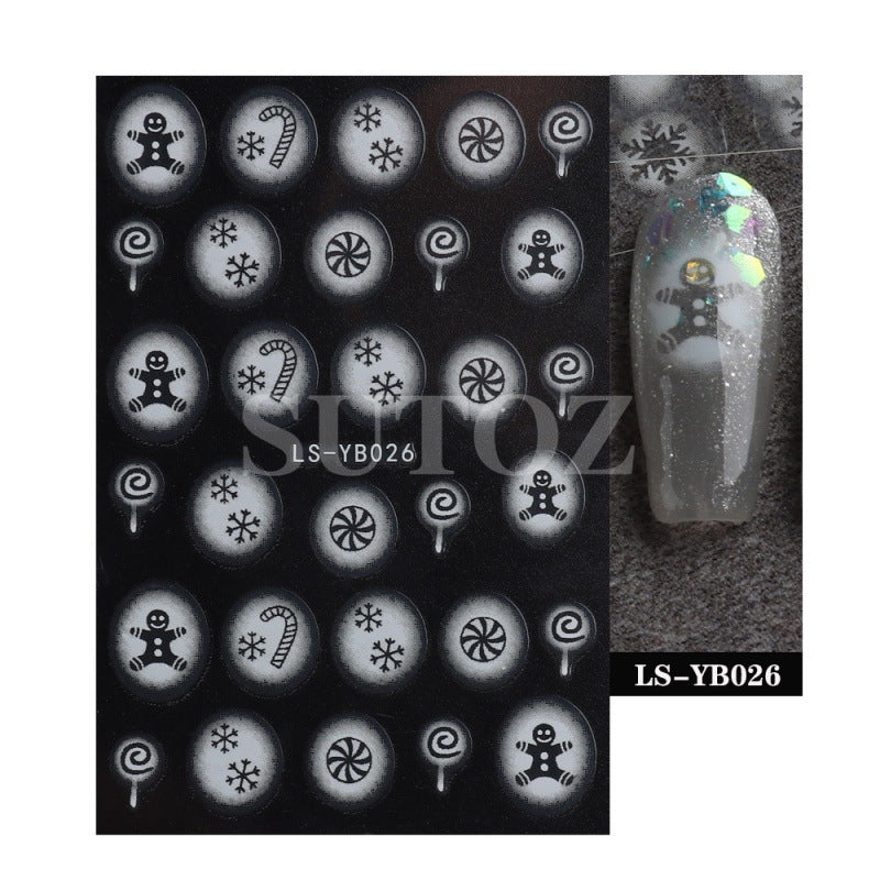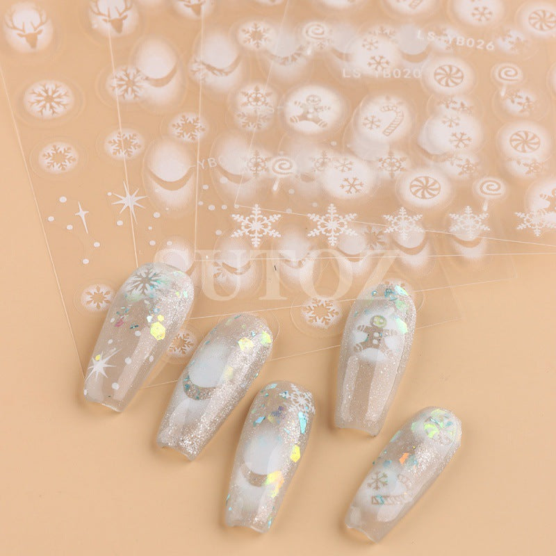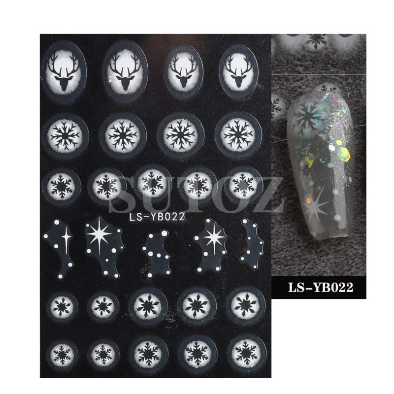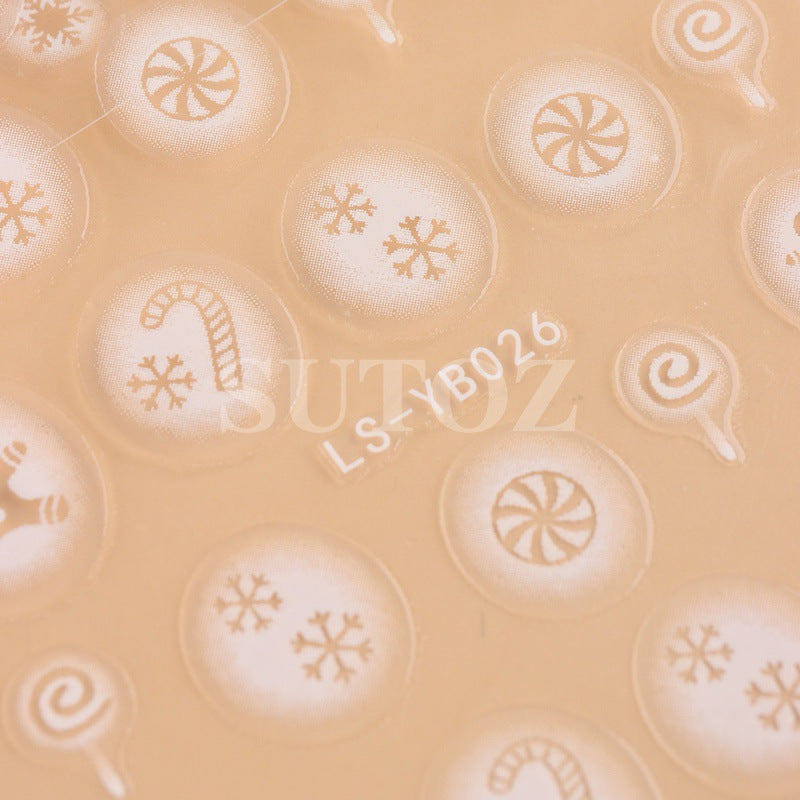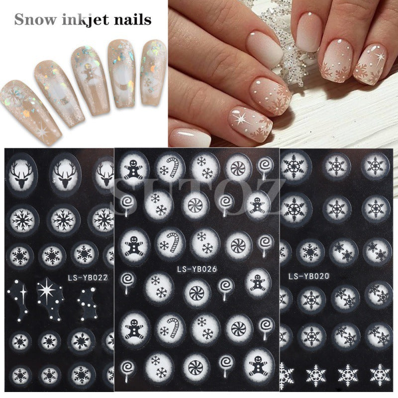 2022 new cross-border manicure stickers inkjet French Christmas snow elk cartoon candy 3D adhesive stickers
