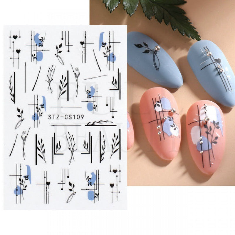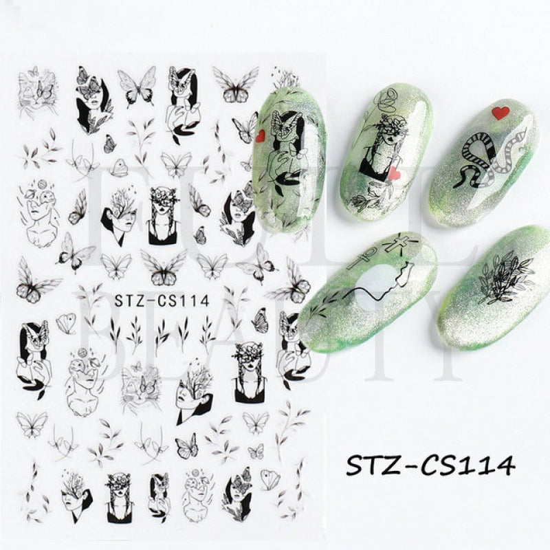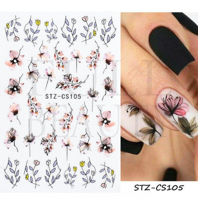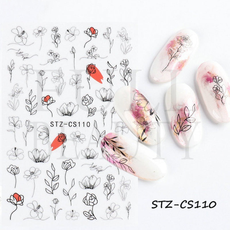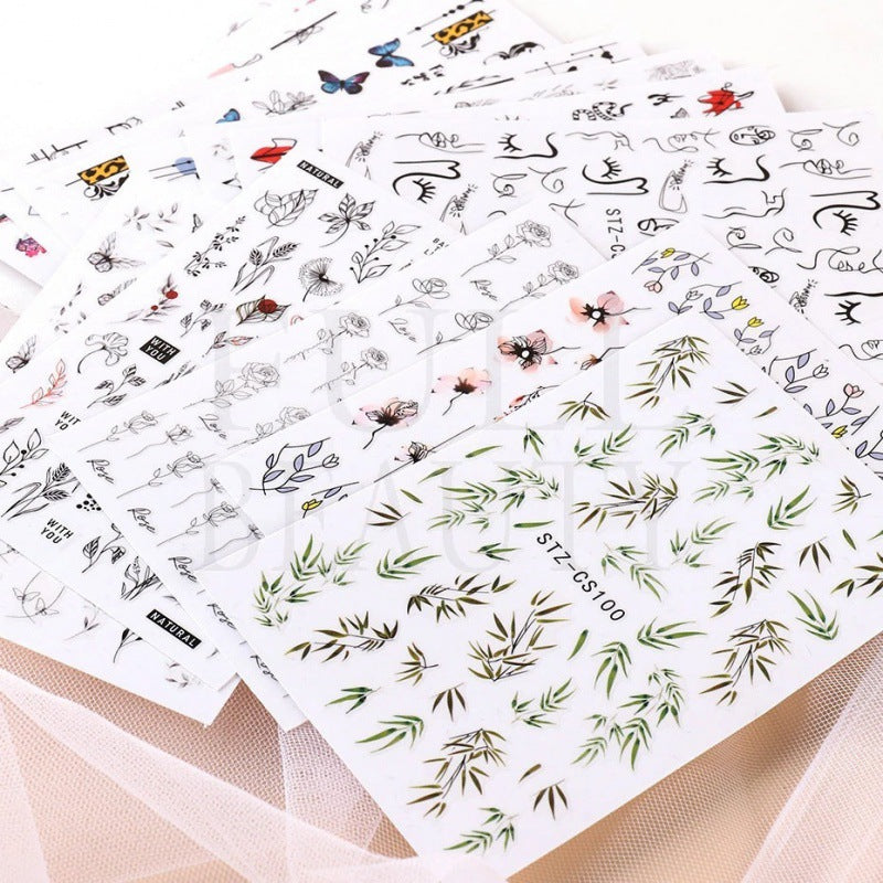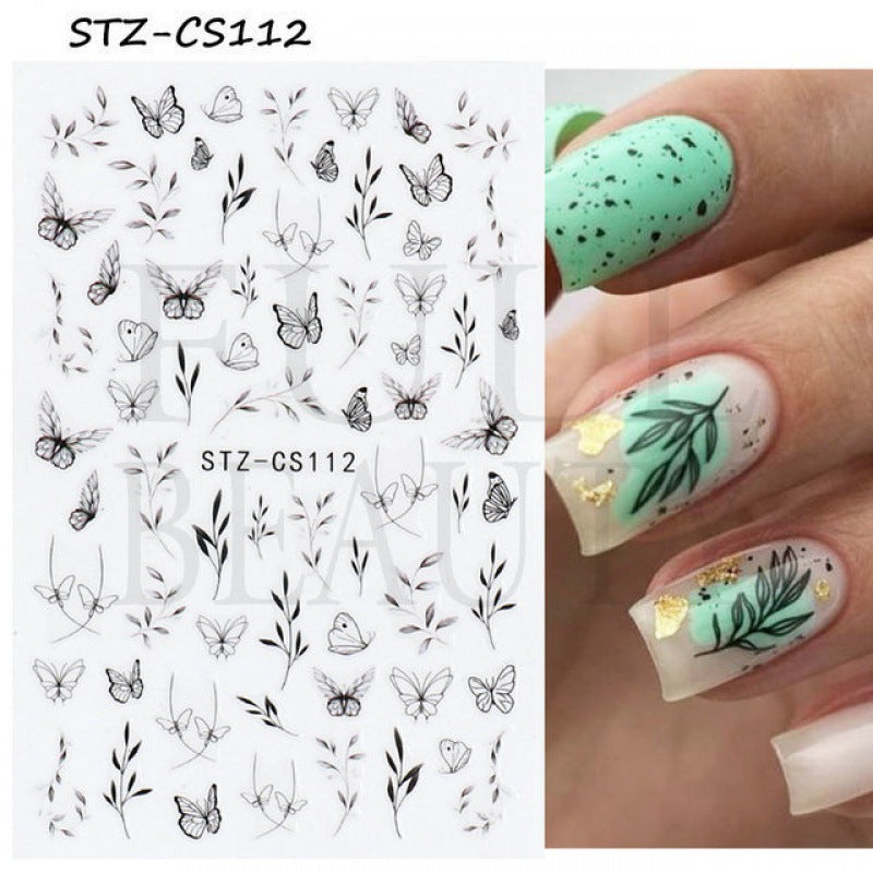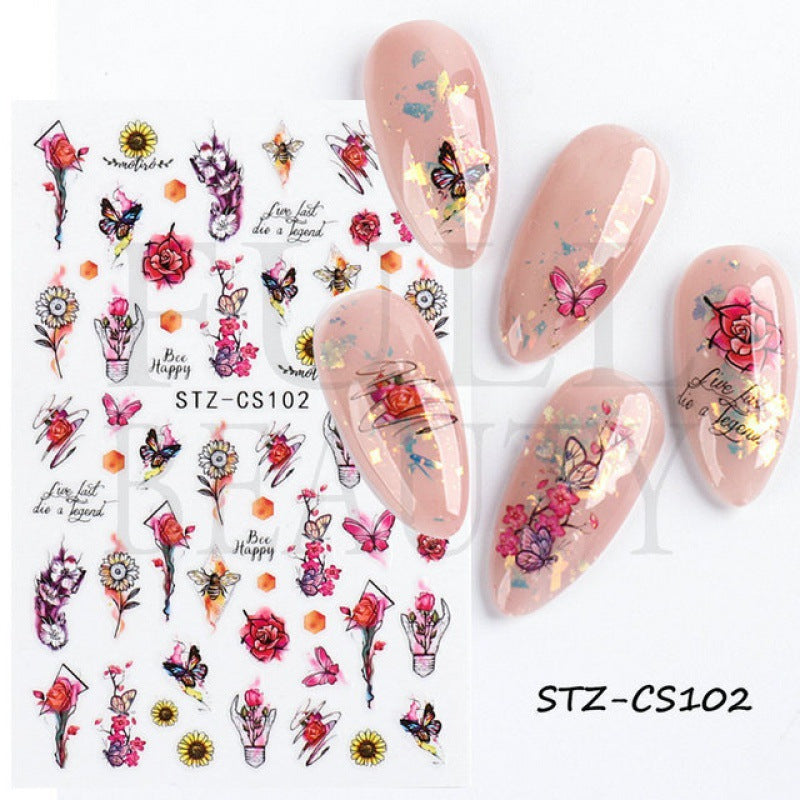 2022 new cross-border manicure stickers ins fresh flowers and natural color butterfly lines facial makeup stickers