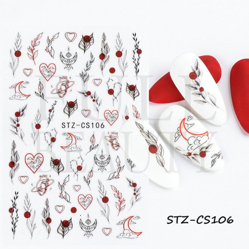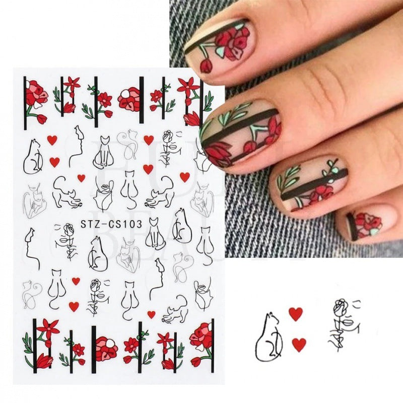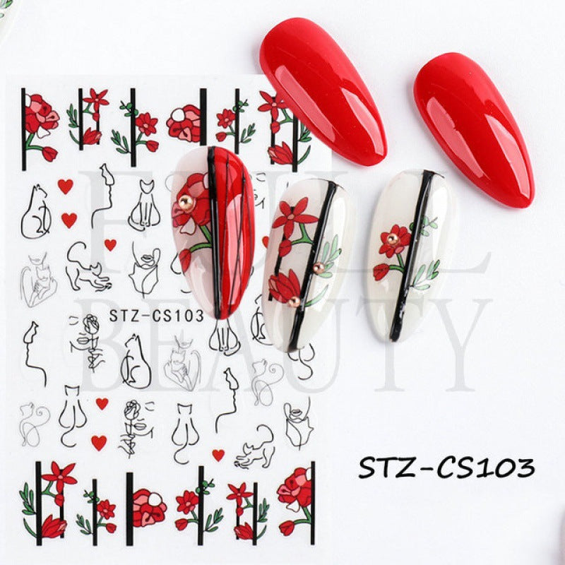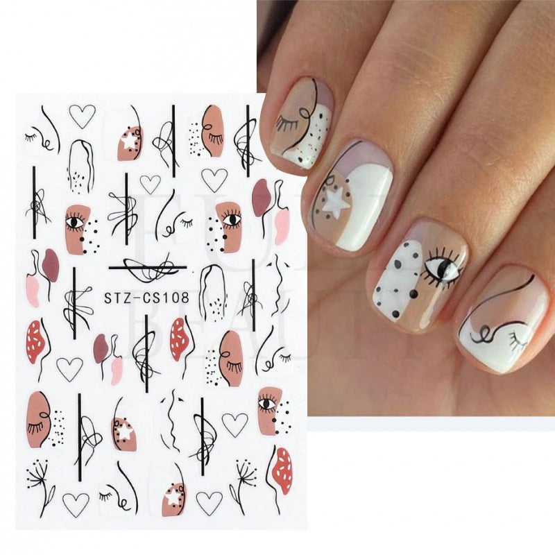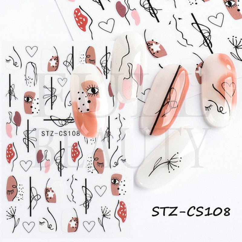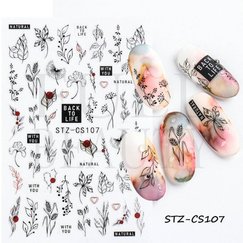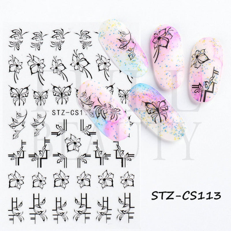 2022 new cross-border manicure stickers ins fresh flowers and natural color butterfly lines facial makeup stickers