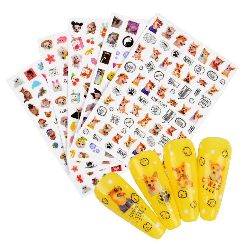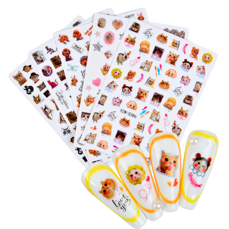 2022 new cross-border manicure strap adhesive sticker cute cat dog nail sticker YZW-S decal sticker
