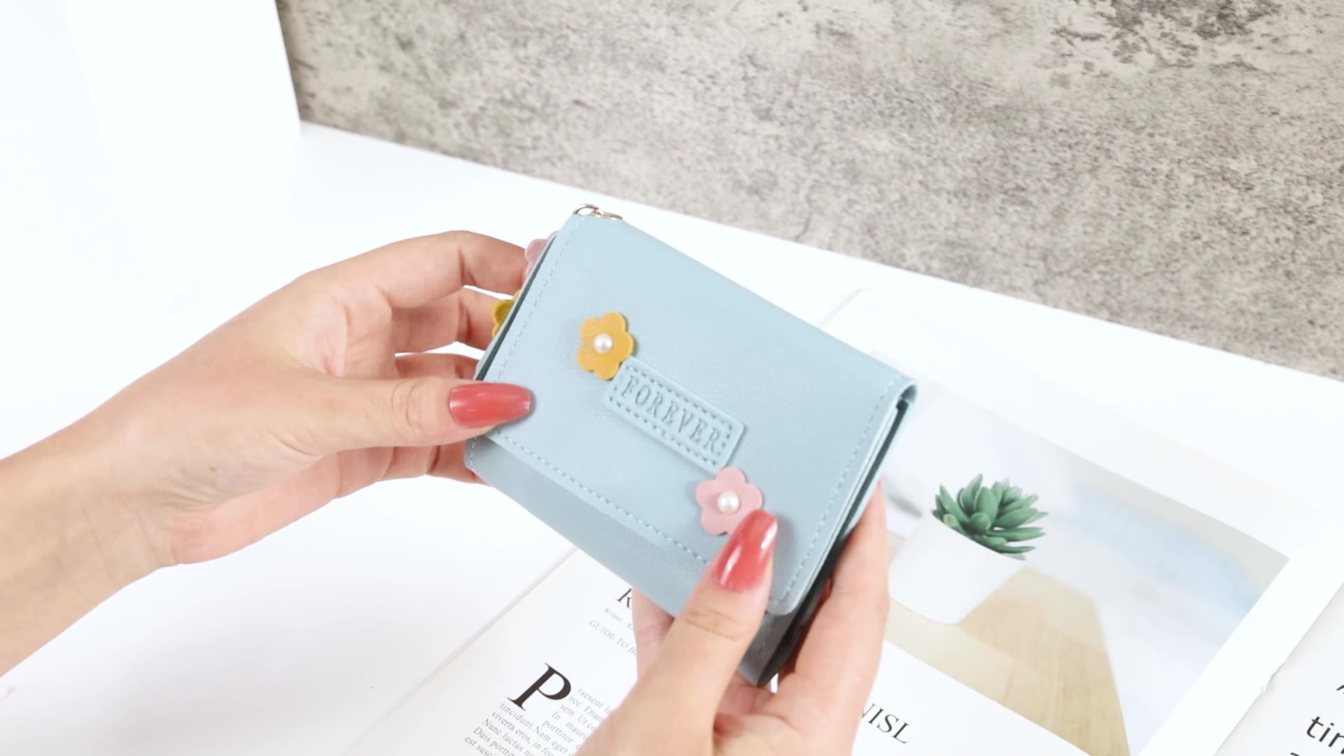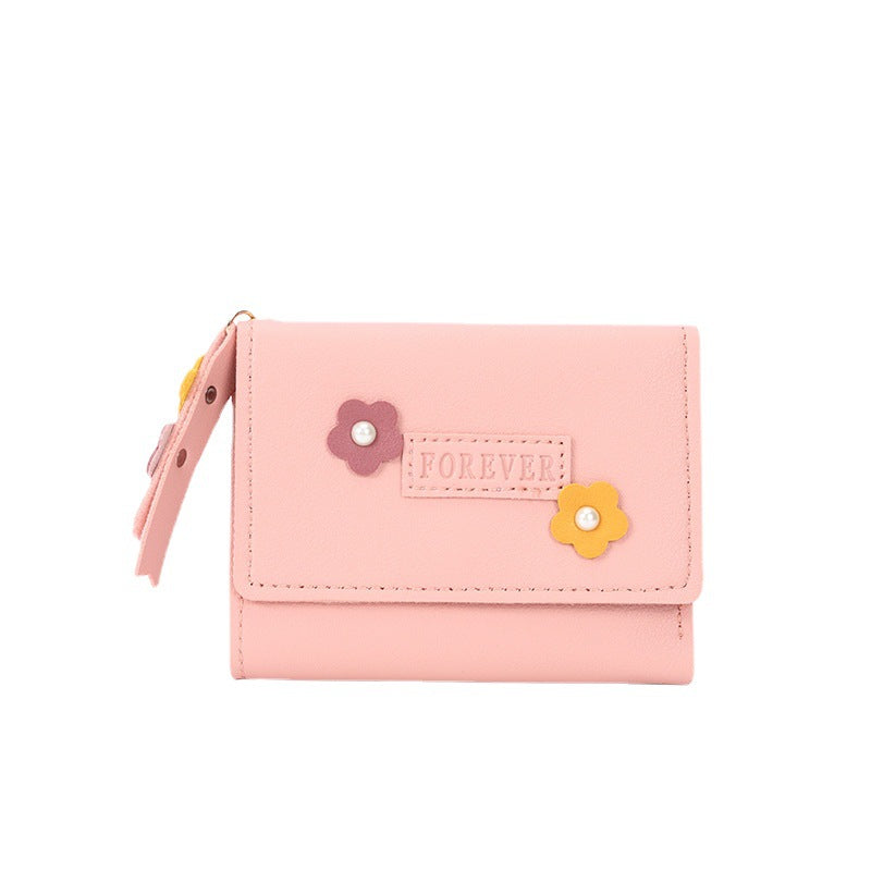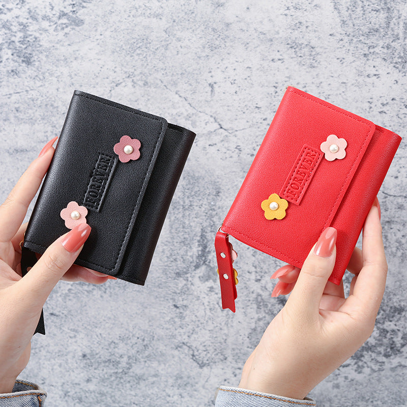 2022 New Cute Flower Ladies Small Wallet Short Japanese and Korean Simple Three-fold Student Coin Purse Card Wallet Wallet