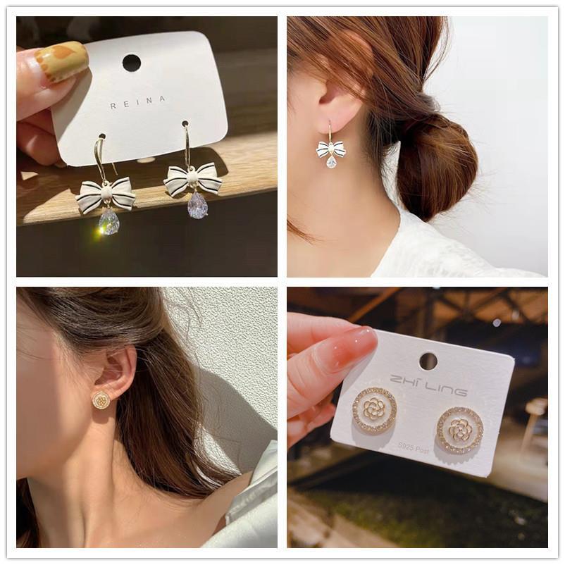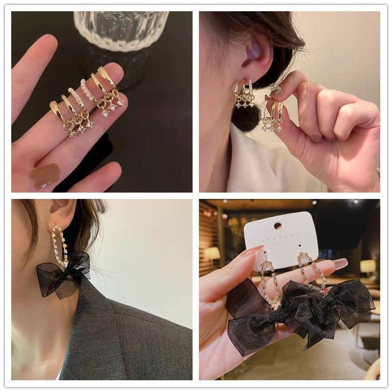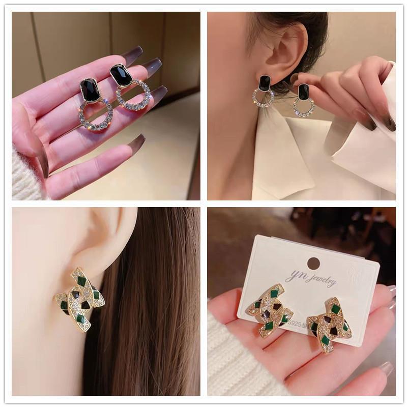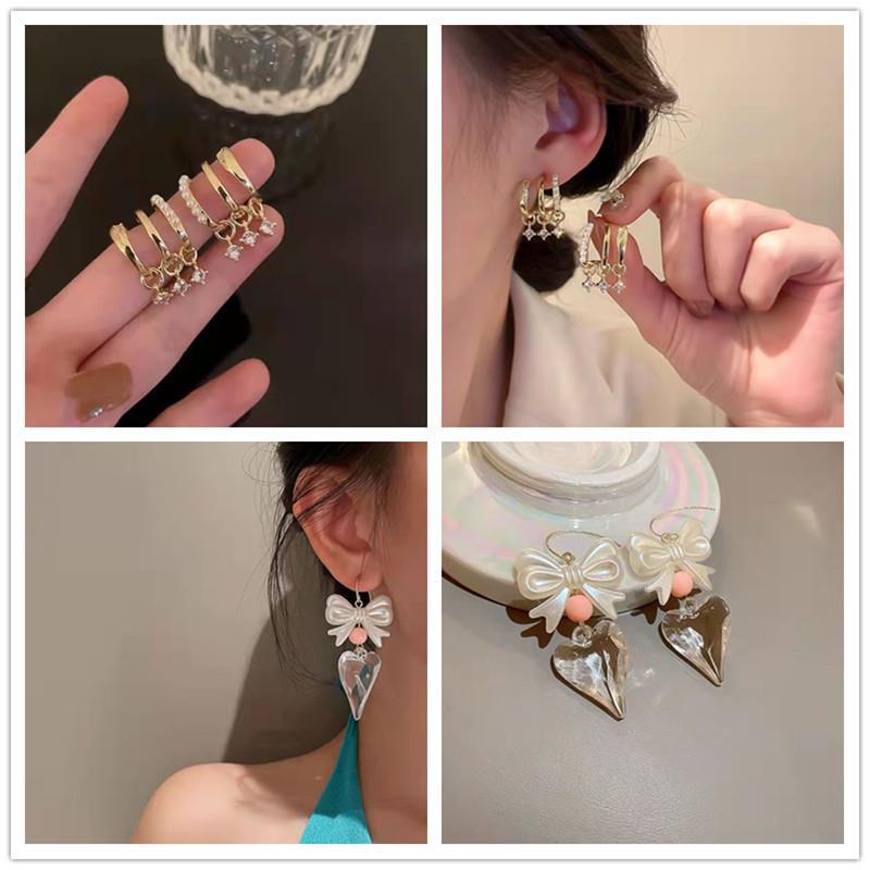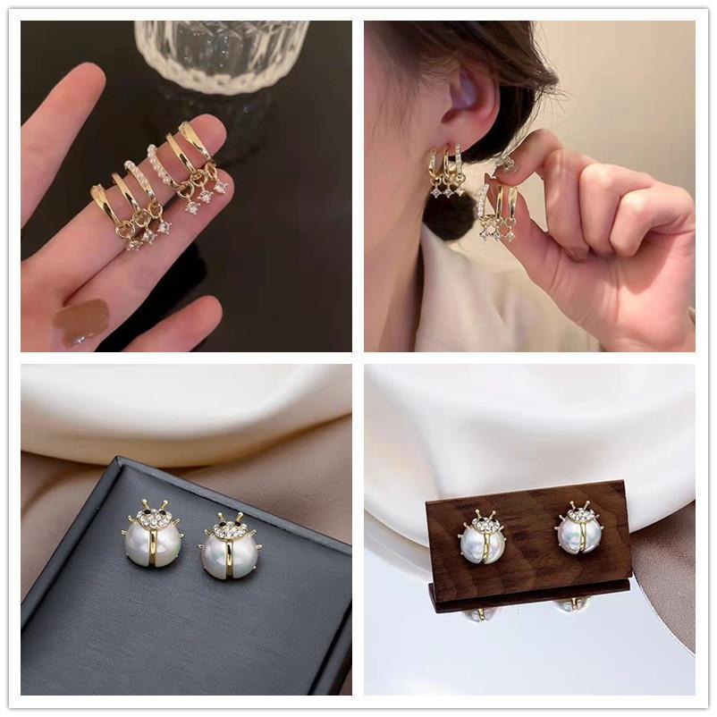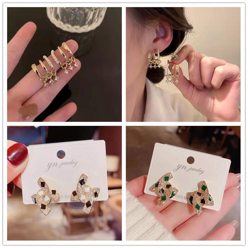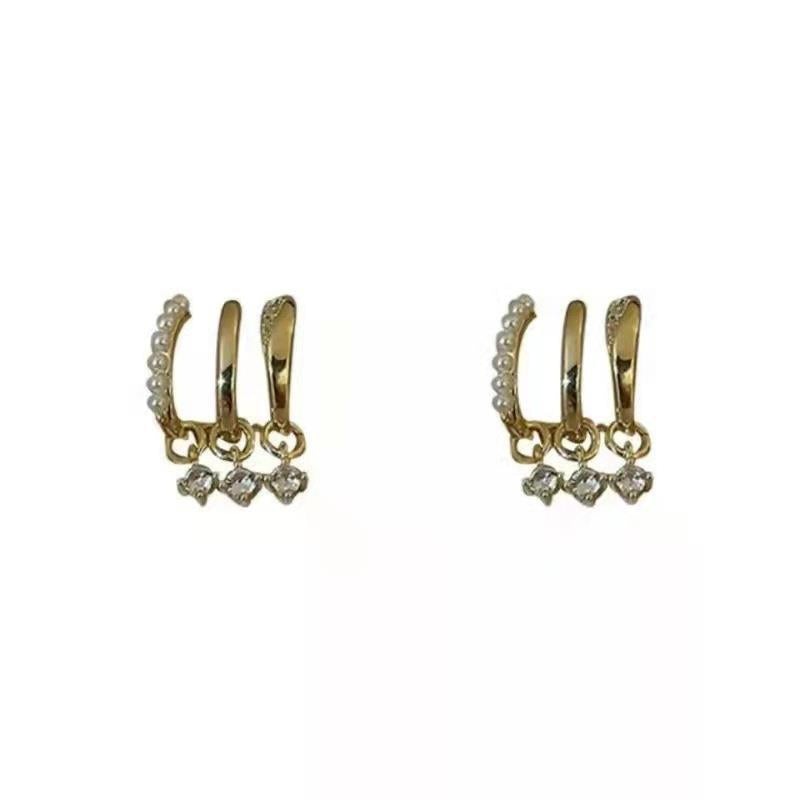 2022 new diamond-encrusted pearl earrings fashion personality one earring wears multiple earholes effect earrings jewelry