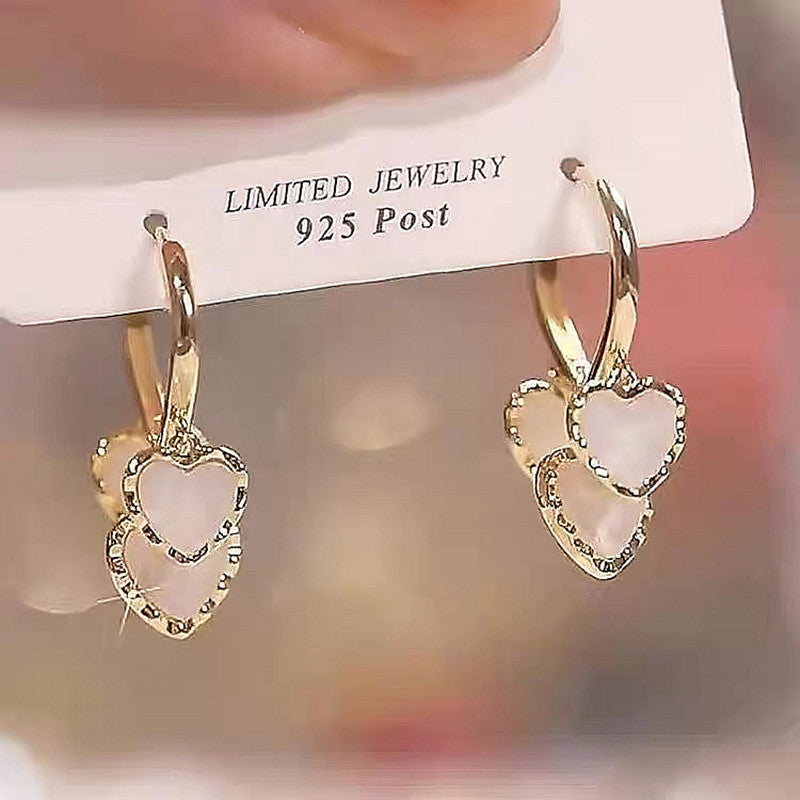 2022 new ear jewelry Douyin same style white love heart moving earrings women's light luxury temperament personality simple earbuds