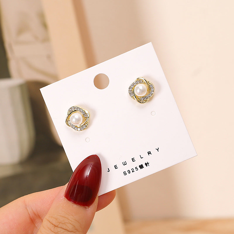 2022 New Elegant Temperament Design Earrings Exquisite Small Fashion Square Rhinestone Pearl Color Matching Earrings