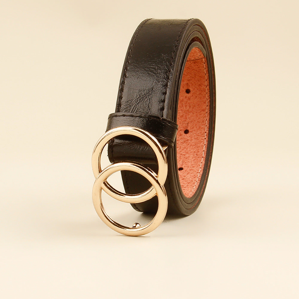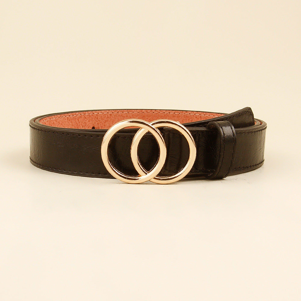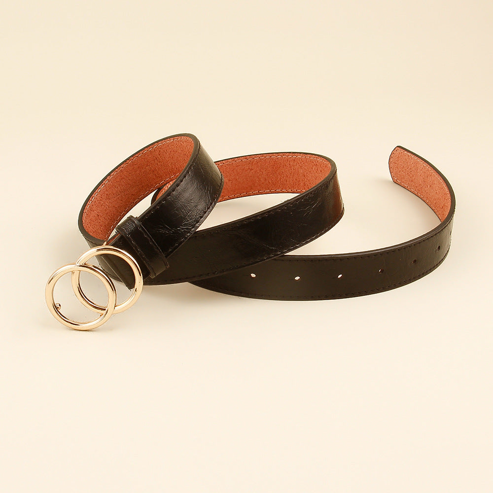 2022 new European and American cross-border round buckle belt women's fashion jeans casual pants double round buckle retro belt wholesale