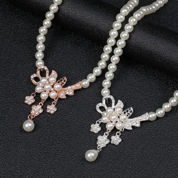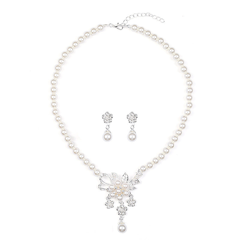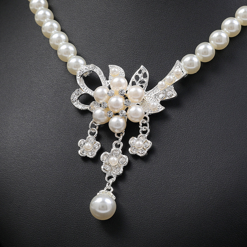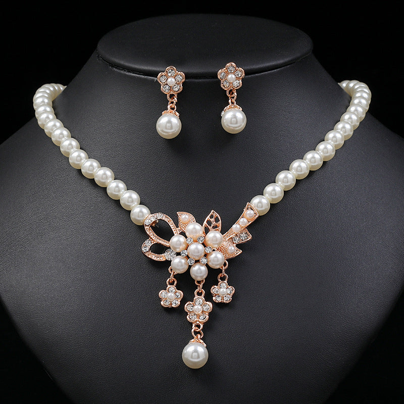 2022 New Fashion Pearl Flower Necklace Earrings Set European and American Cross-border Best Selling Female Jewelry Alloy Plating