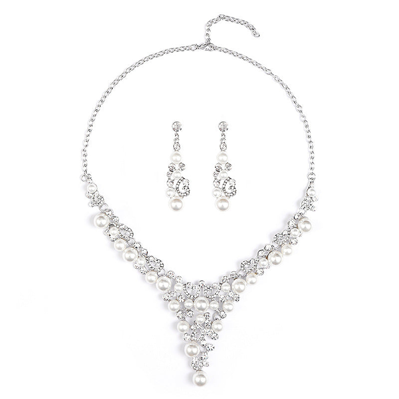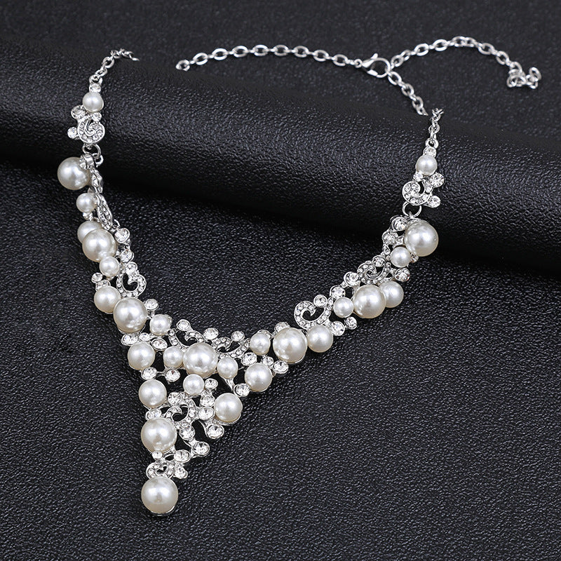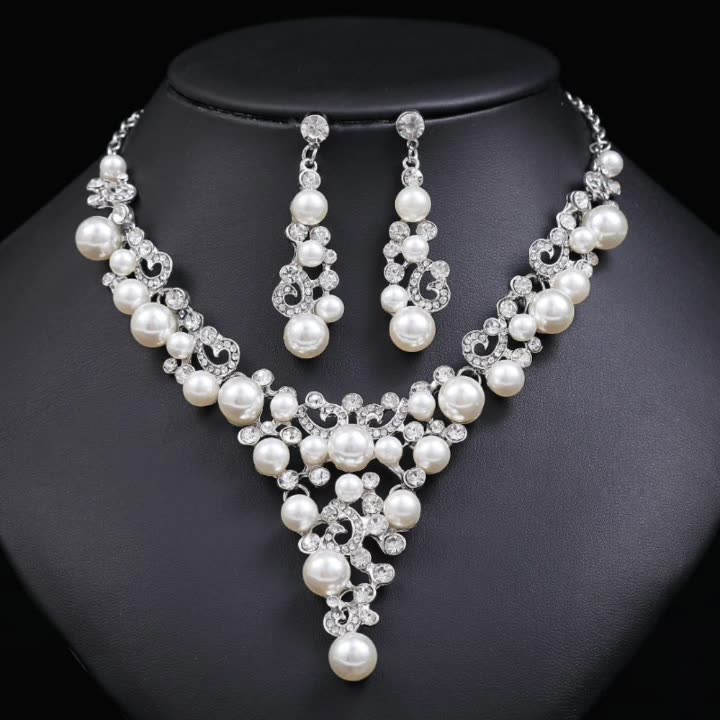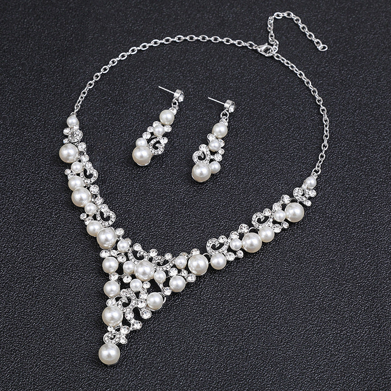 2022 New Fashion Pearl Flower Necklace Earrings Set European and American Cross-border Best Selling Female Jewelry Alloy Plating