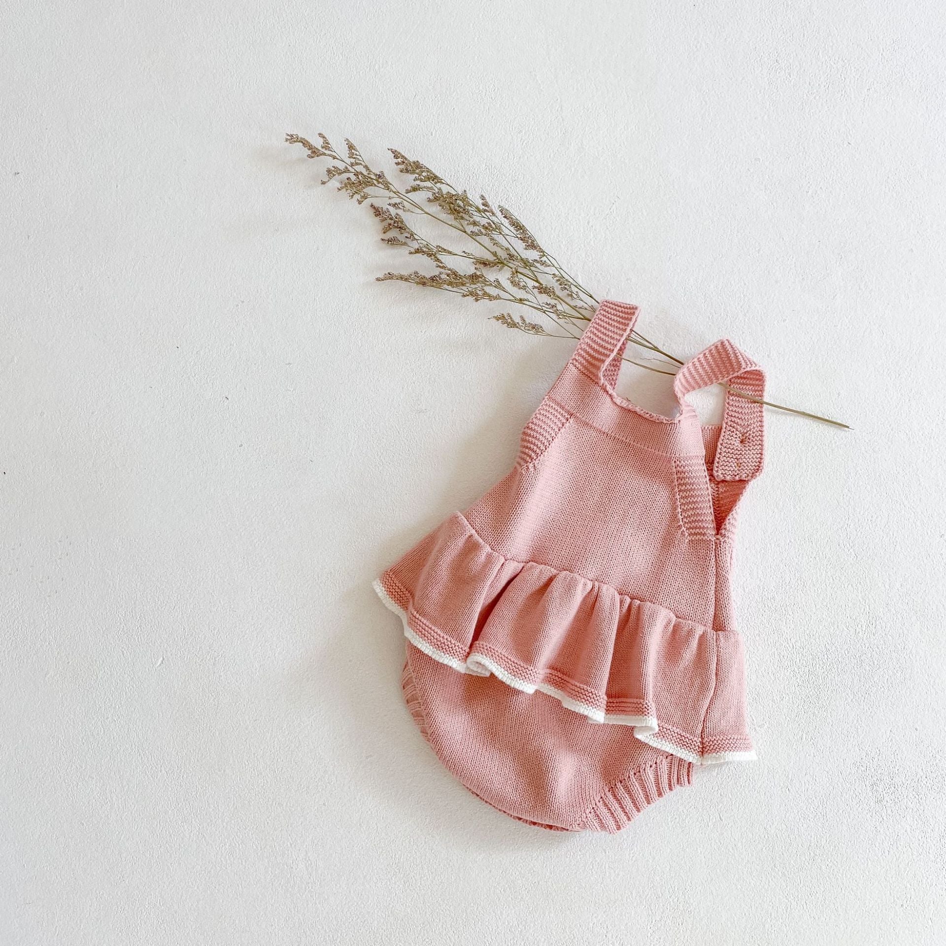 2023 autumn baby girl baby love lotus leaf romper knitted wool jumpsuit bag fart triangle climbing suit