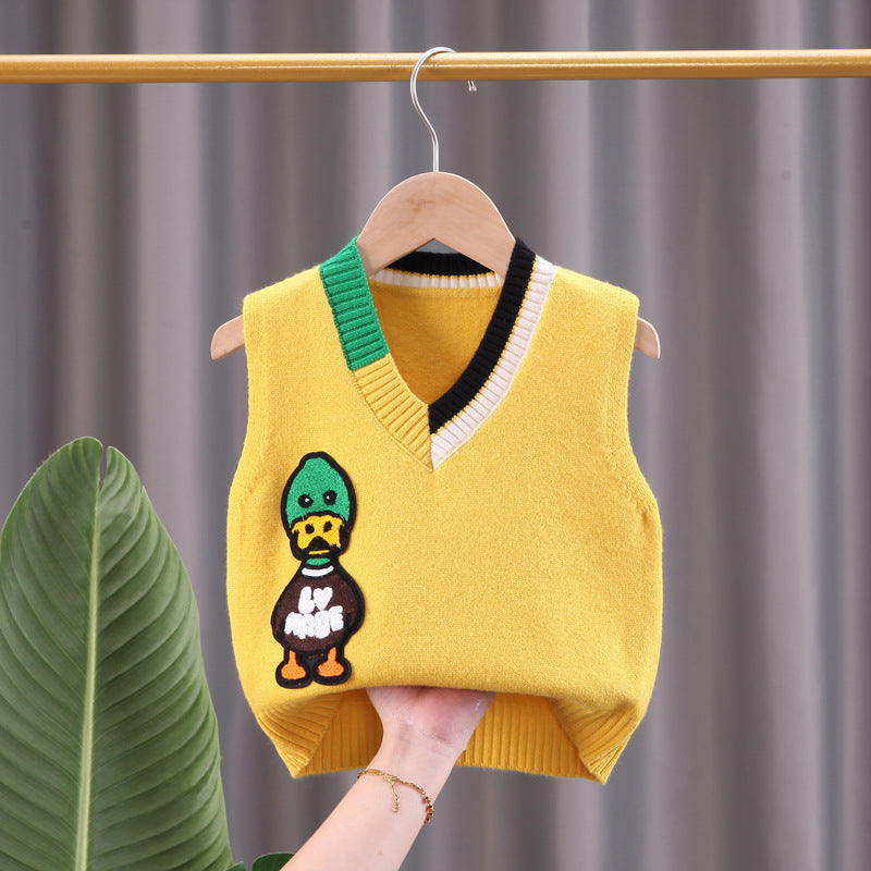 2023 autumn new children's cartoon woolen vest vest vest knitwear baby baby small children's clothing boys and girls fashion