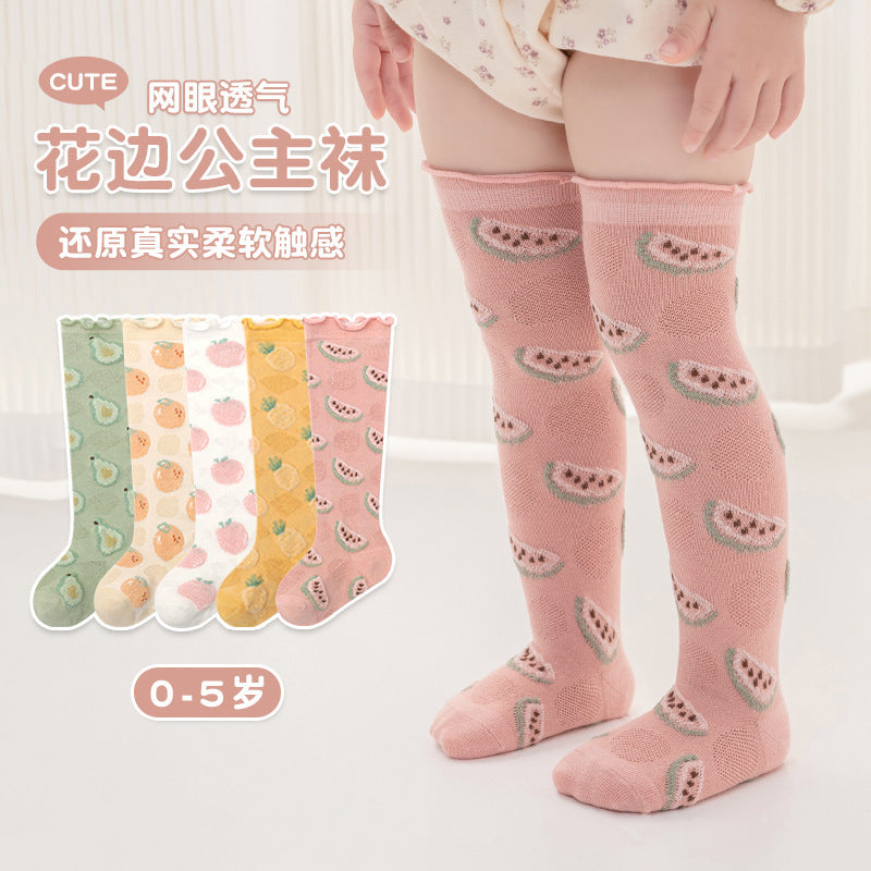 23 spring and summer mesh over-the-knee socks baby anti-mosquito socks baby long tube socks breathable wood ear fruit high tube socks