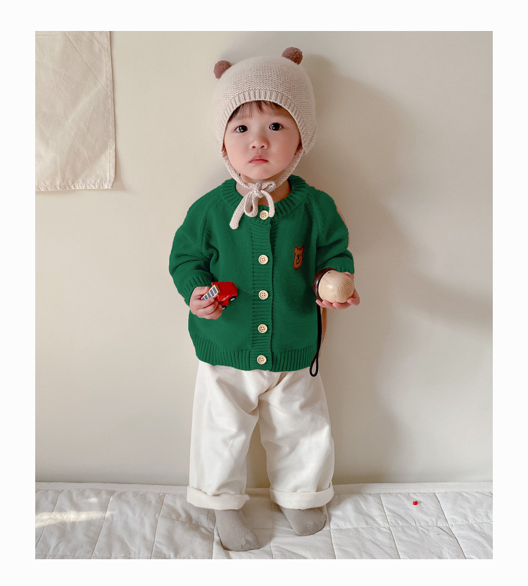 Baby Cardigan Spring and Autumn Girls Knitted Cardigan Outerwear Boys Sweater Thin Newborn Cartoon Korean Top Spring Dress