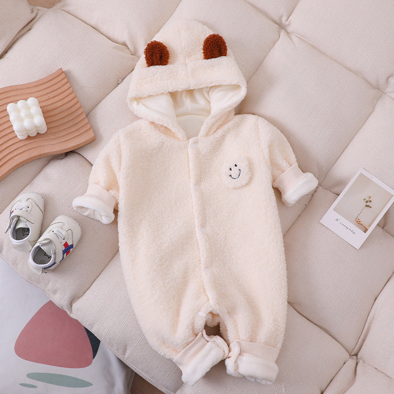 color : Beige Double Layer Smiling Lamb Wool One Piece