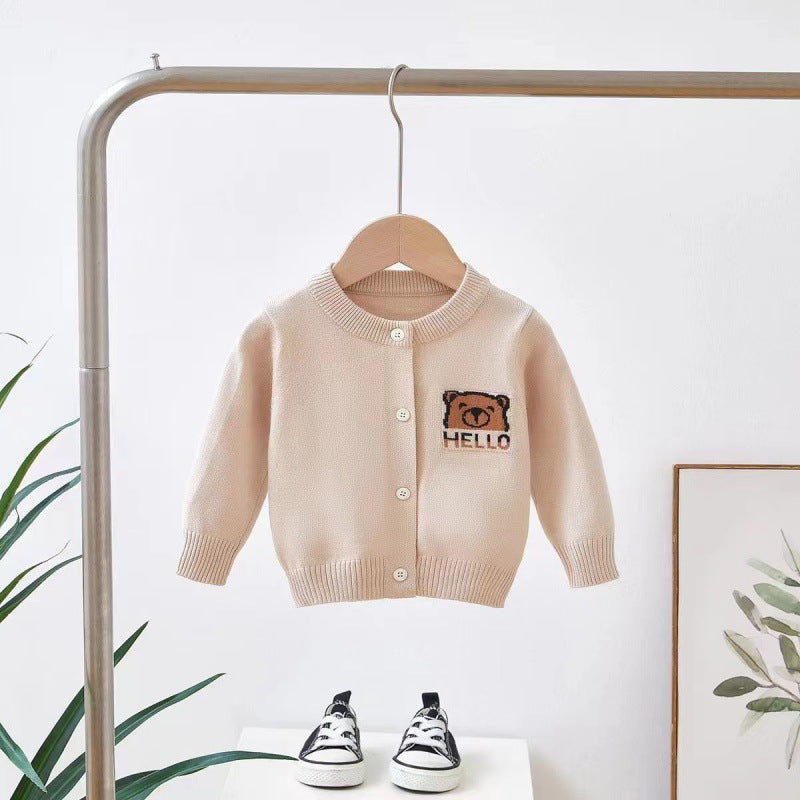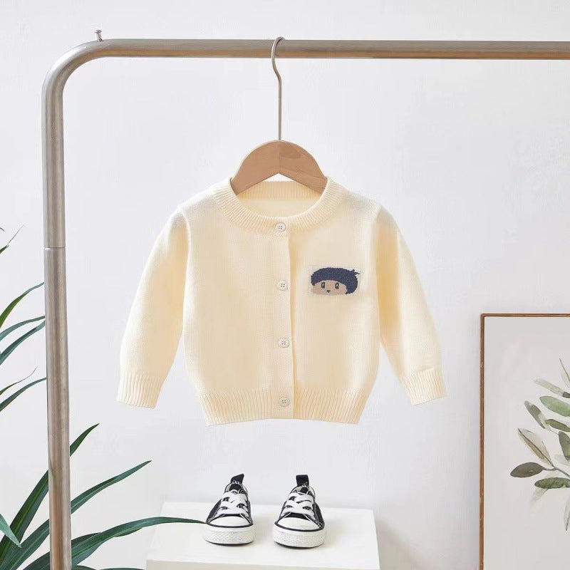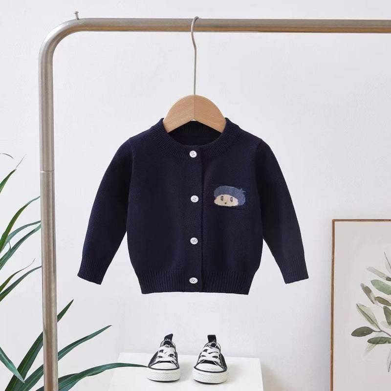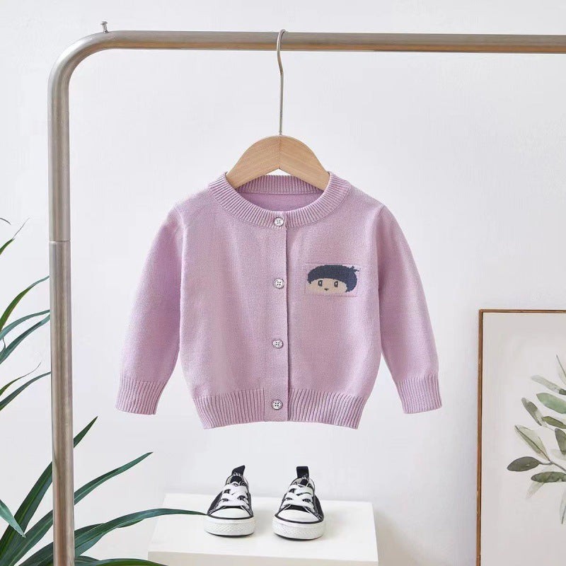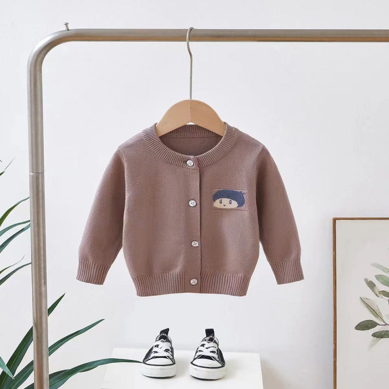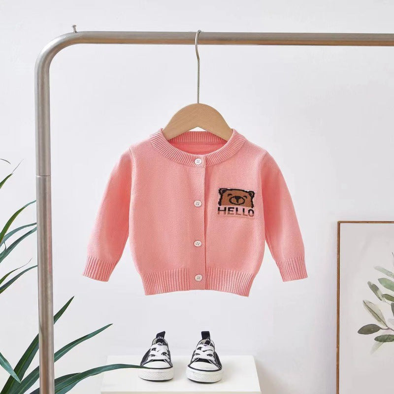Baby sweater top girl baby knitted coat cardigan spring and autumn long-sleeved girl 1 year old boy Baomian children's clothing new