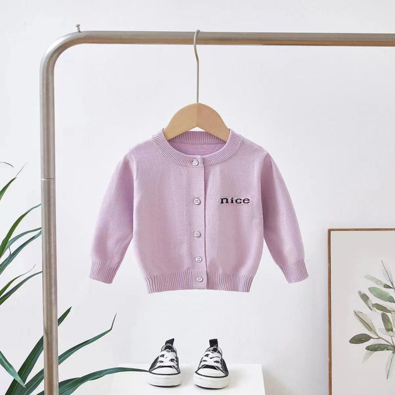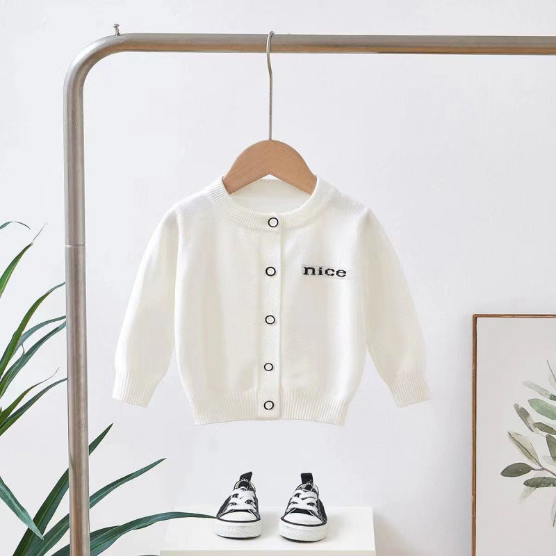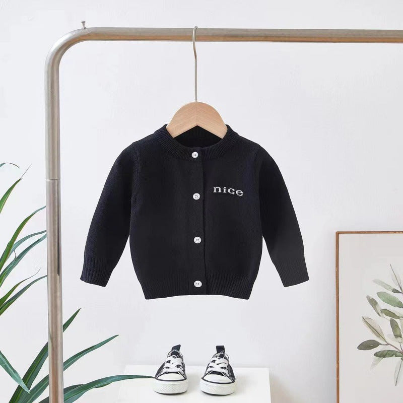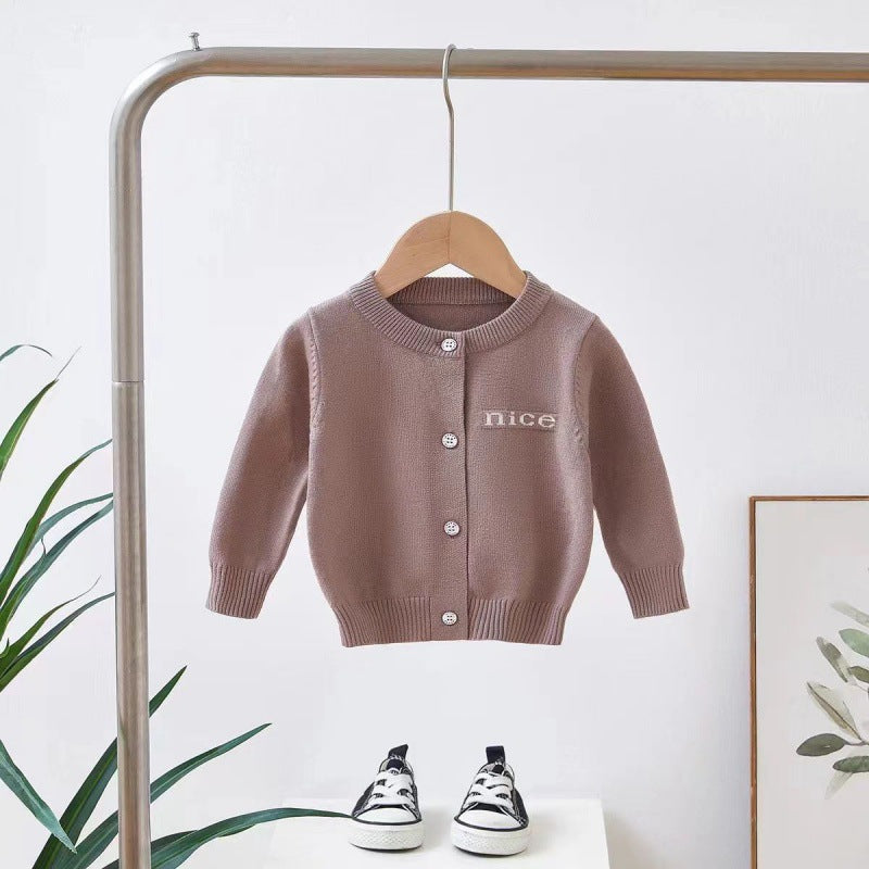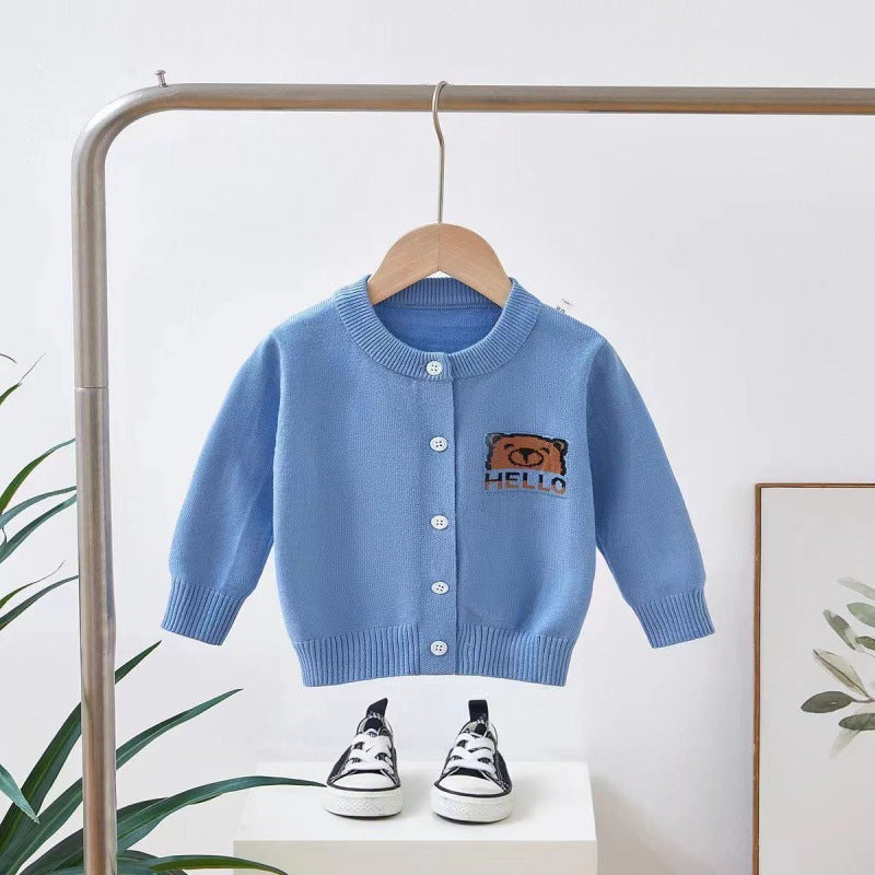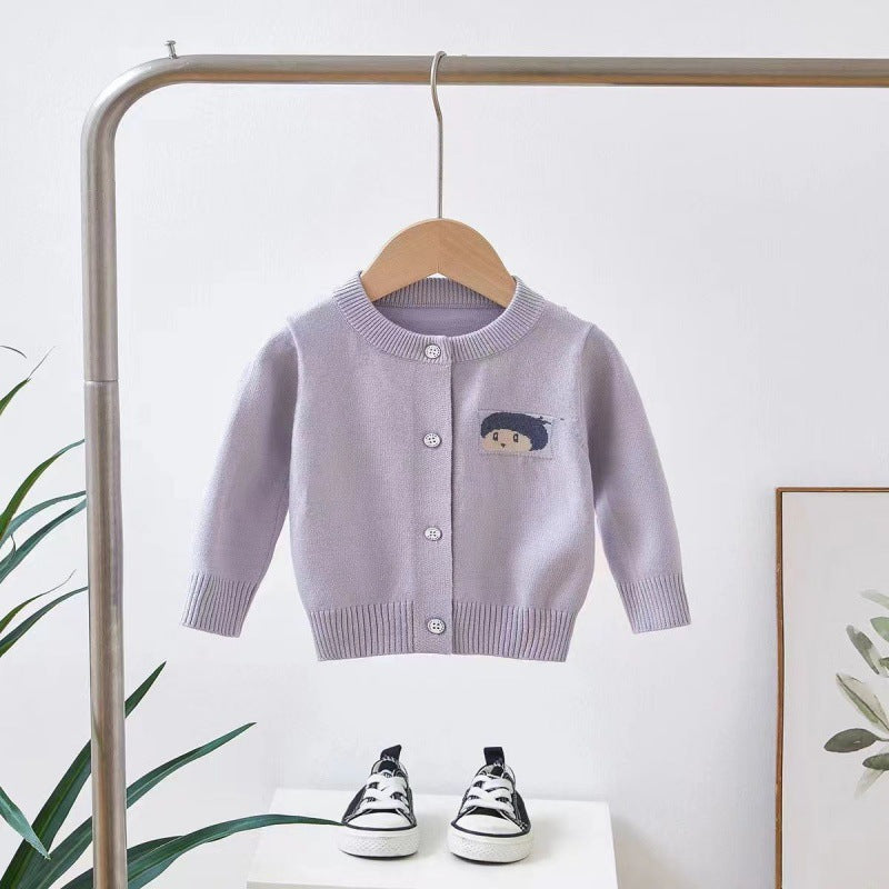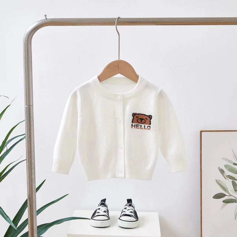 Baby sweater top girl baby knitted coat cardigan spring and autumn long-sleeved girl 1 year old boy Baomian children's clothing new