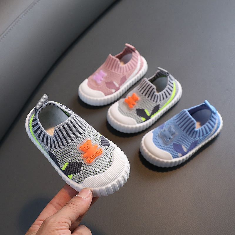 Baby toddler shoes male soft bottom 0-1-2 years old 3 spring and autumn baby girl children non-slip non-falling shoes breathable knitted shoes