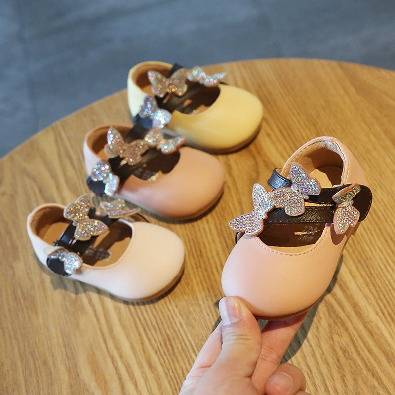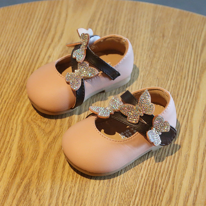 bear spring and autumn female baby niche princess shoes children's toddler shoes baby girls single shoes Korean version of small leather shoes