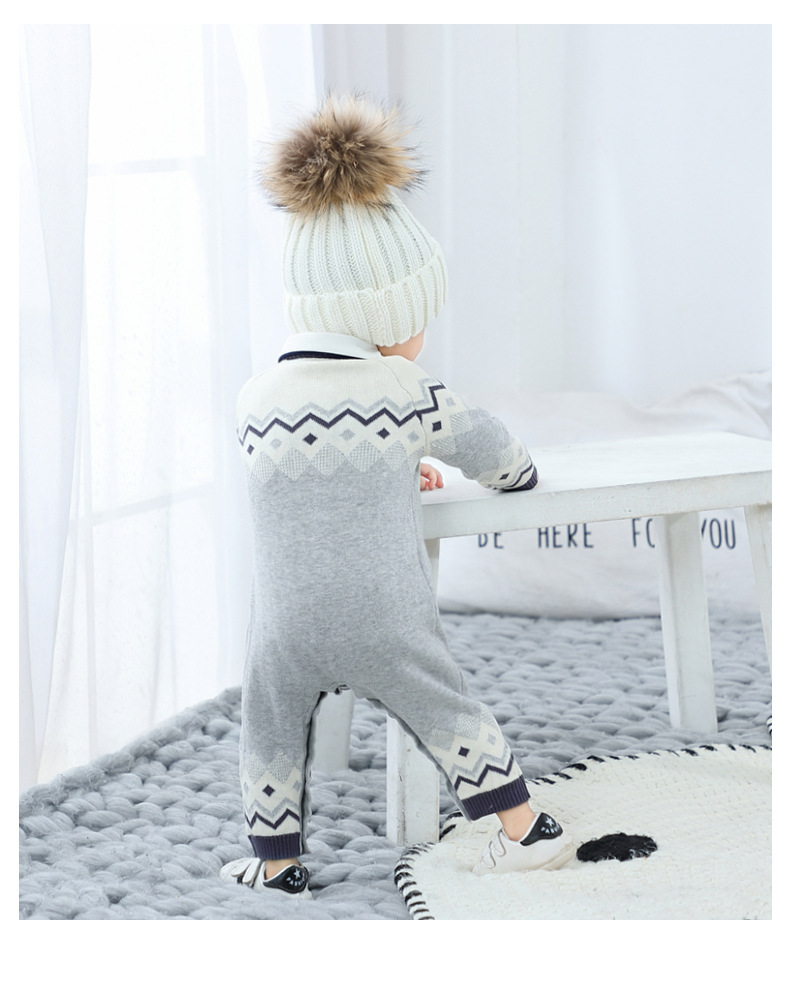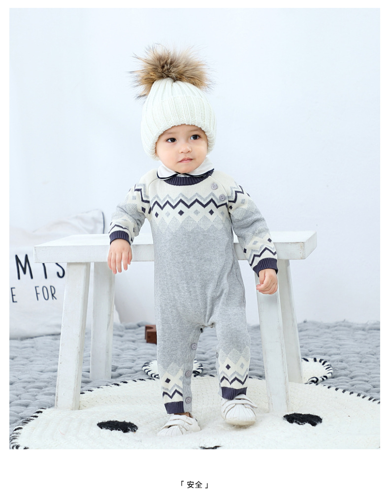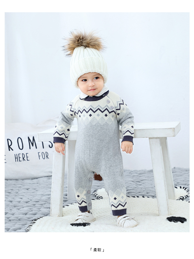 British prince with the same style male baby knitted jumpsuit one-piece sweater boy baby autumn and winter clothes baby boy clothes