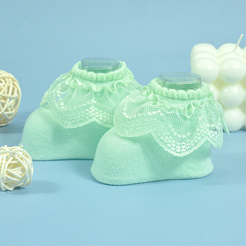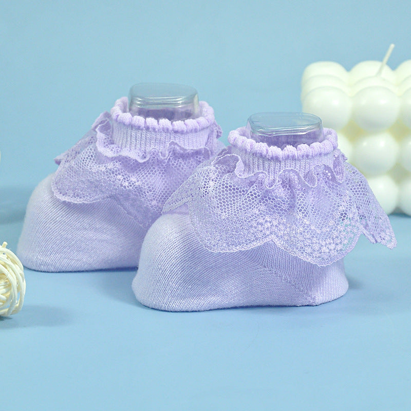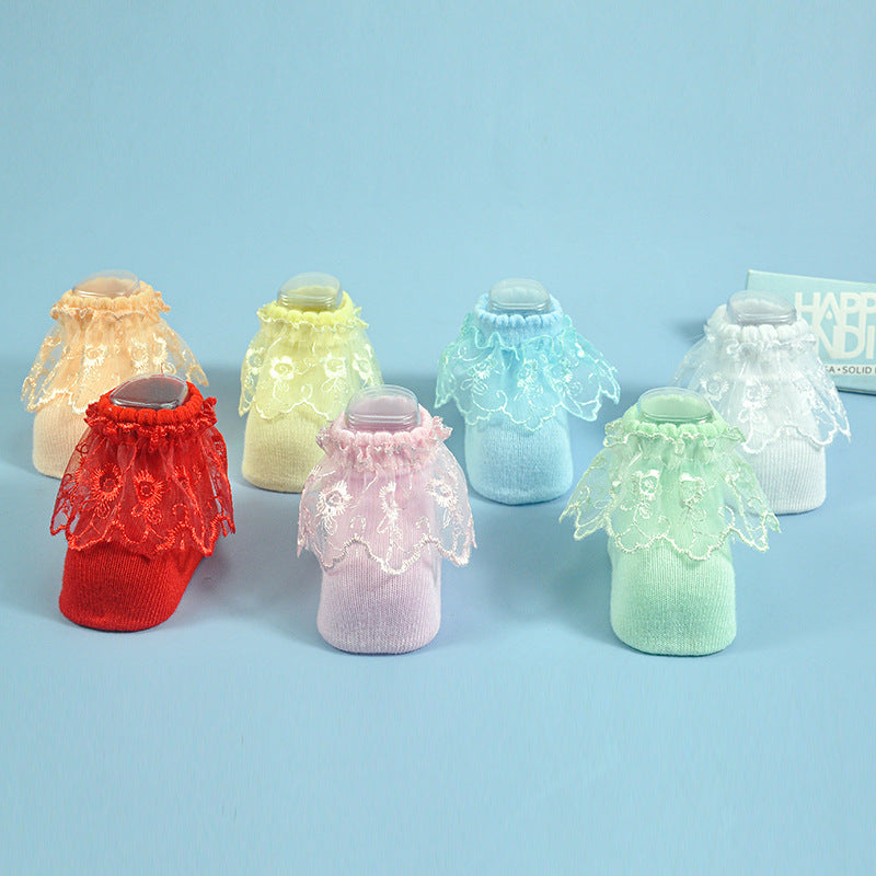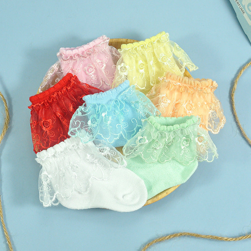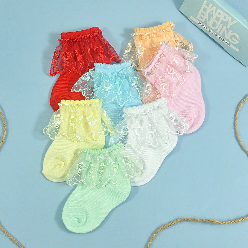 Children's socks macaron color soft lace socks solid color embroidery lace edge girls socks baby soft cotton socks