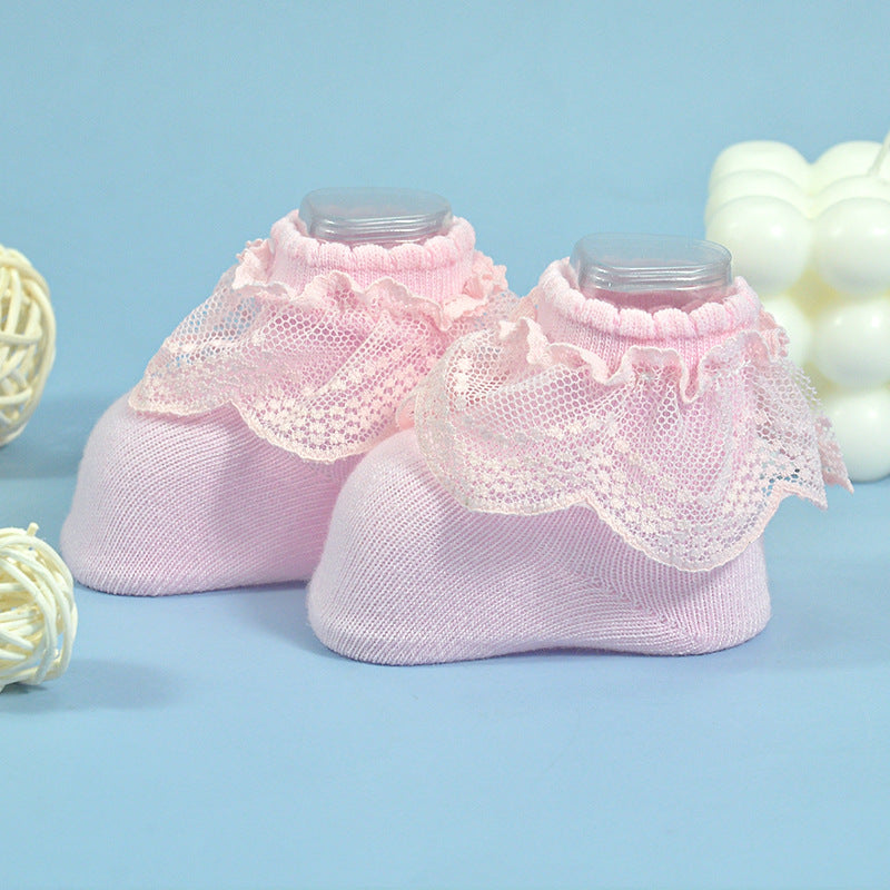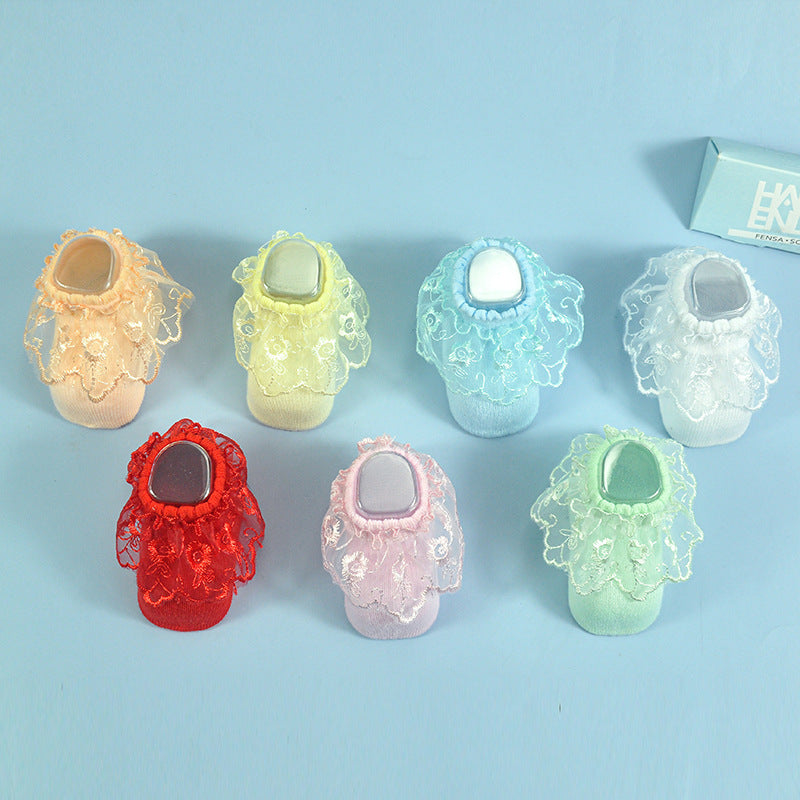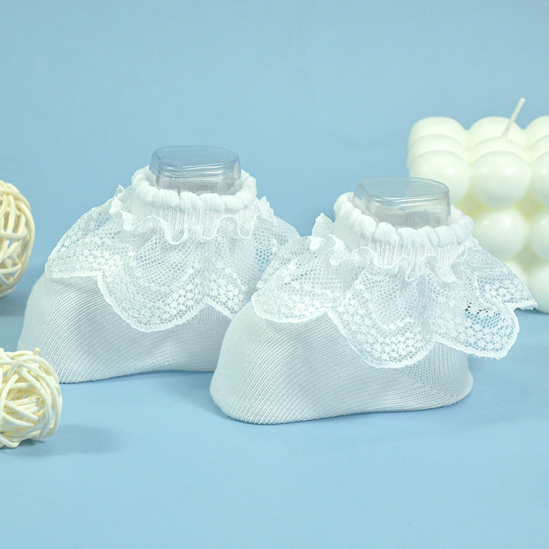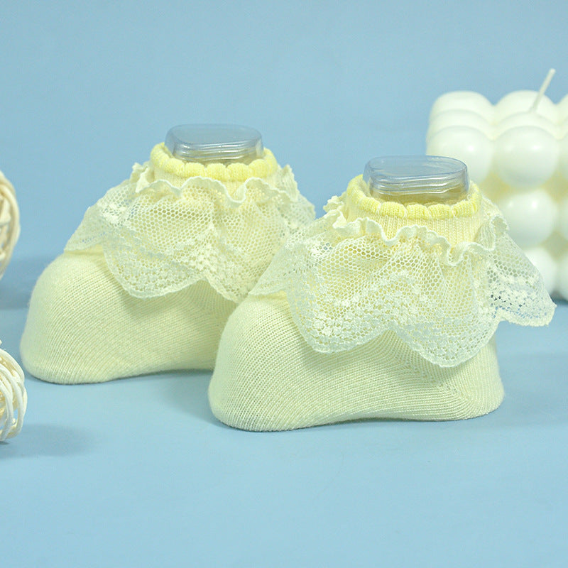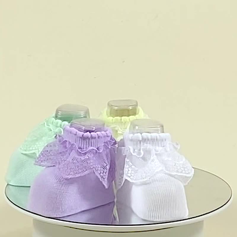 Children's socks macaron color soft lace socks solid color embroidery lace edge girls socks baby soft cotton socks