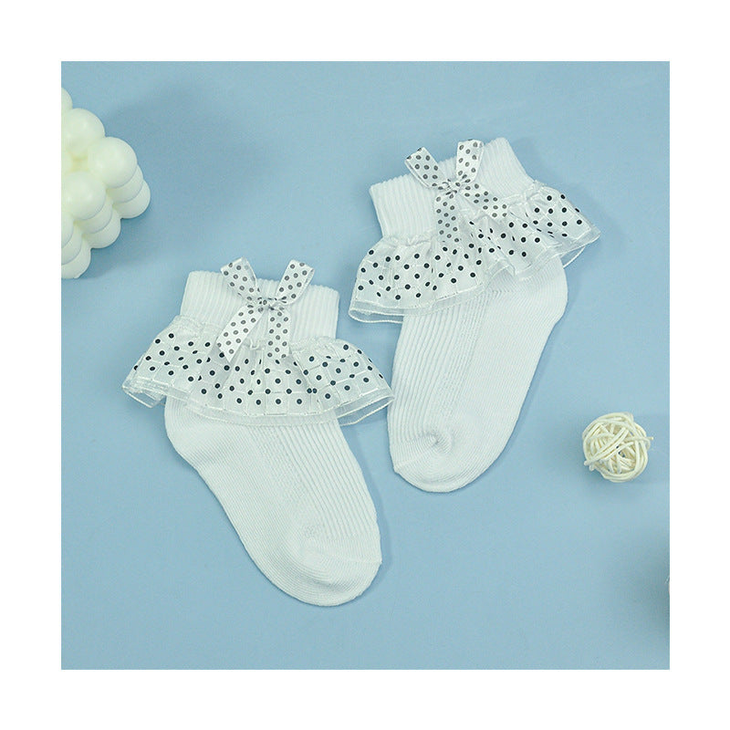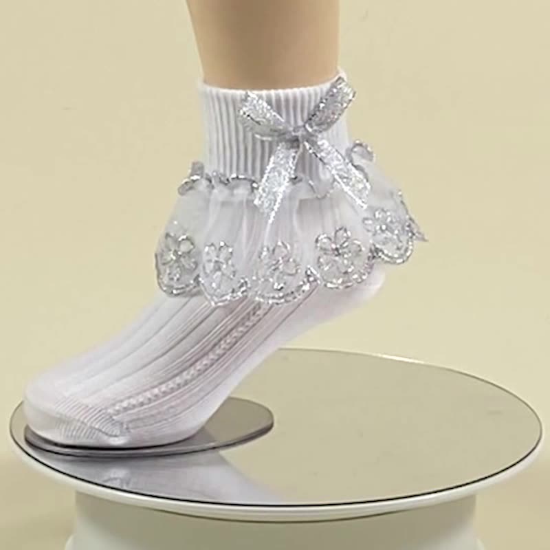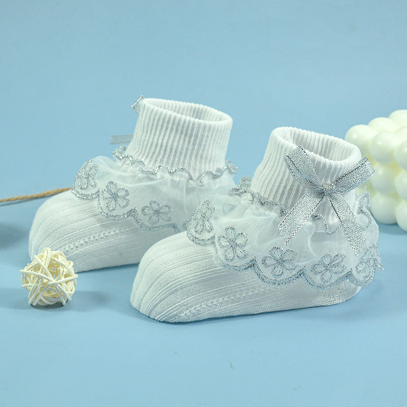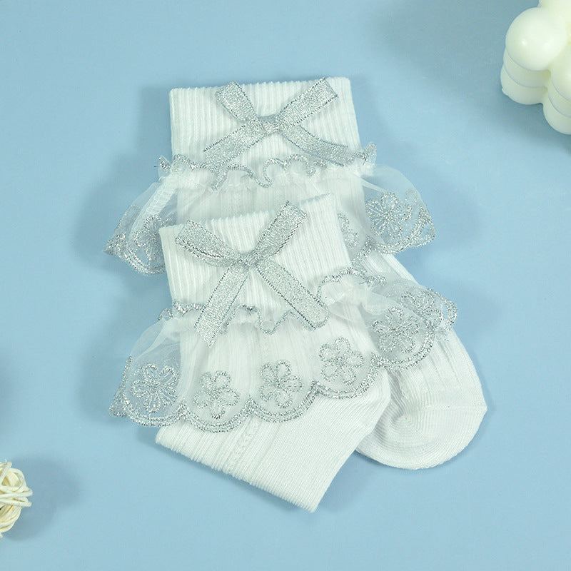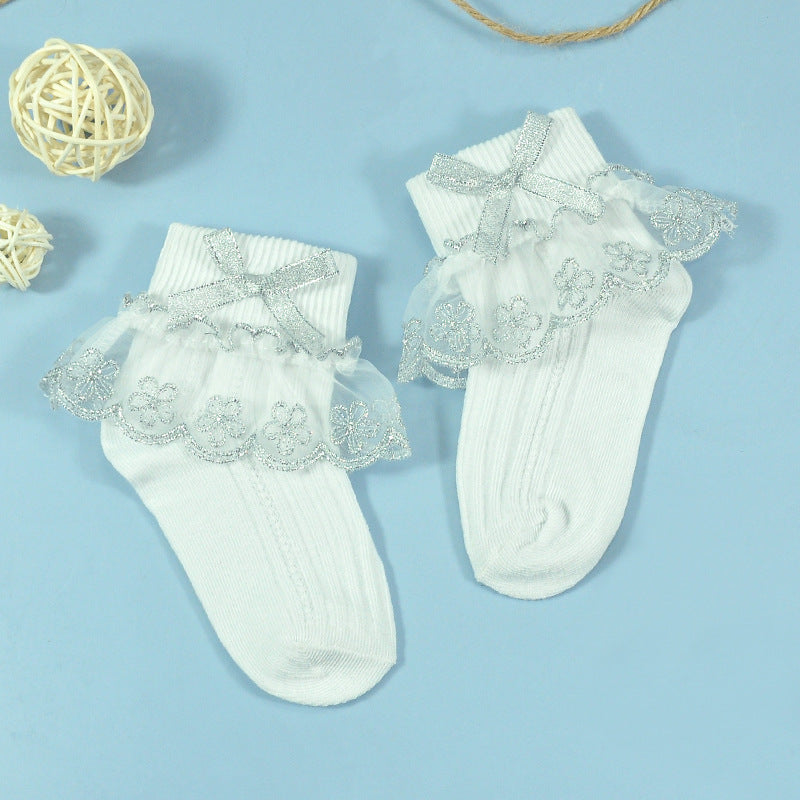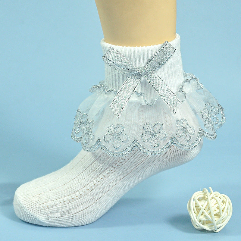 Children's socks silver bow lace girls socks light breathable embroidery short tube socks girls baby socks