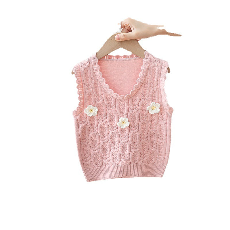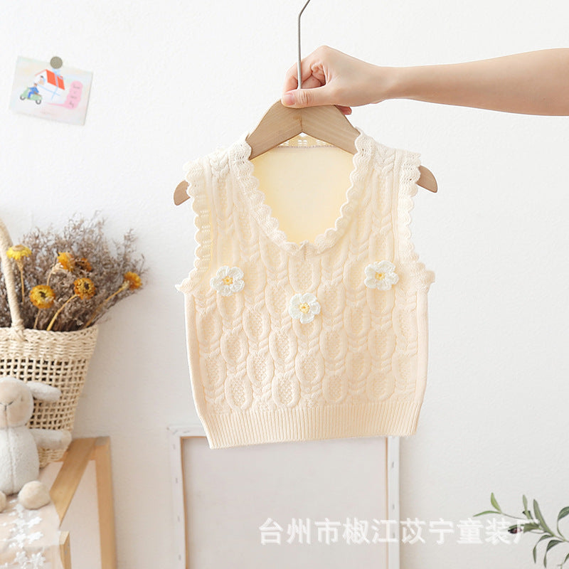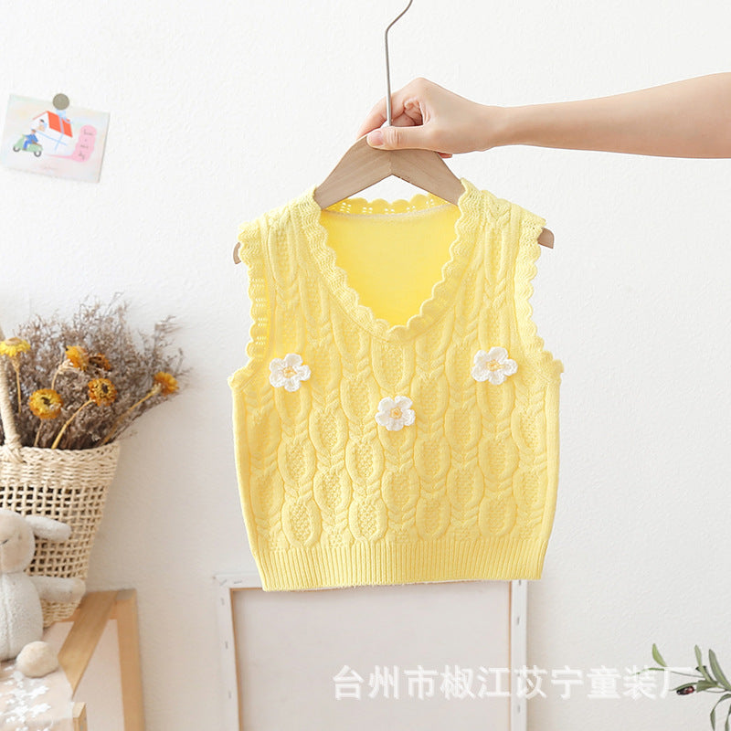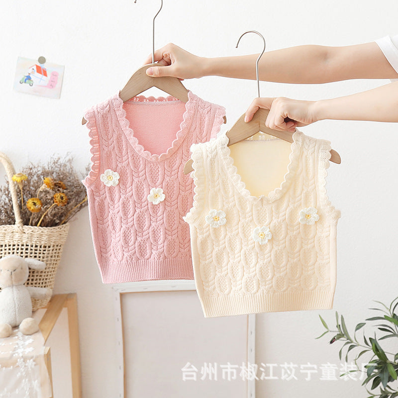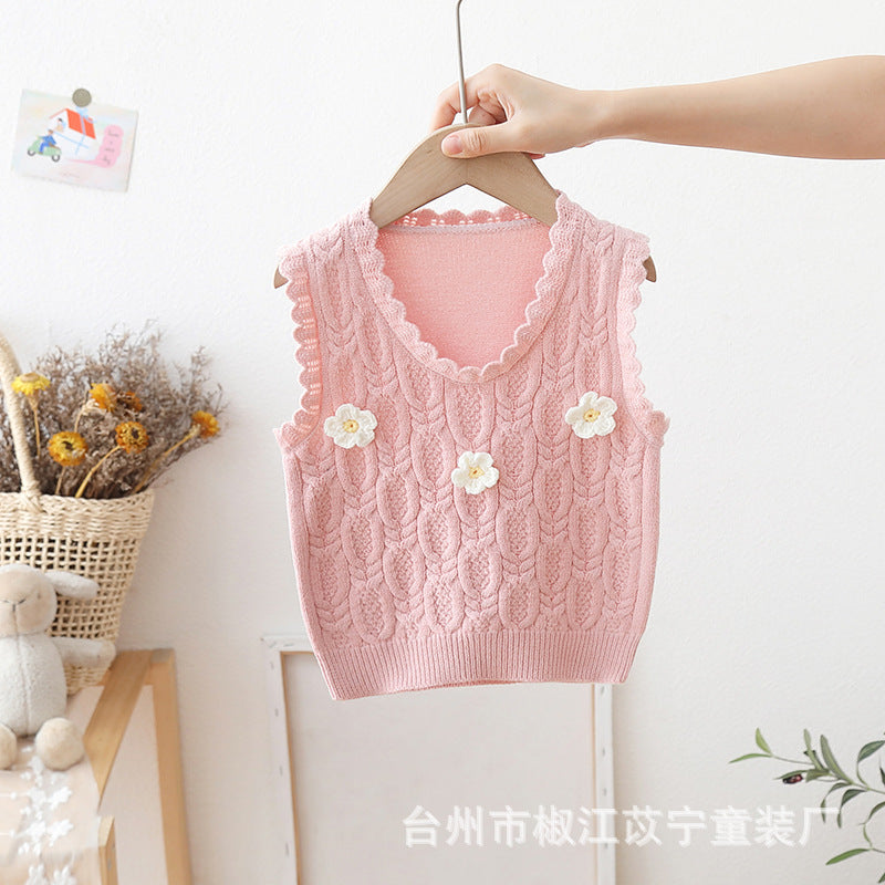 Children's Vest Girls Sweater Cardigan Western Style 2023 New Baby Autumn Clothing Children's Fried Street Baby Knitted Vest