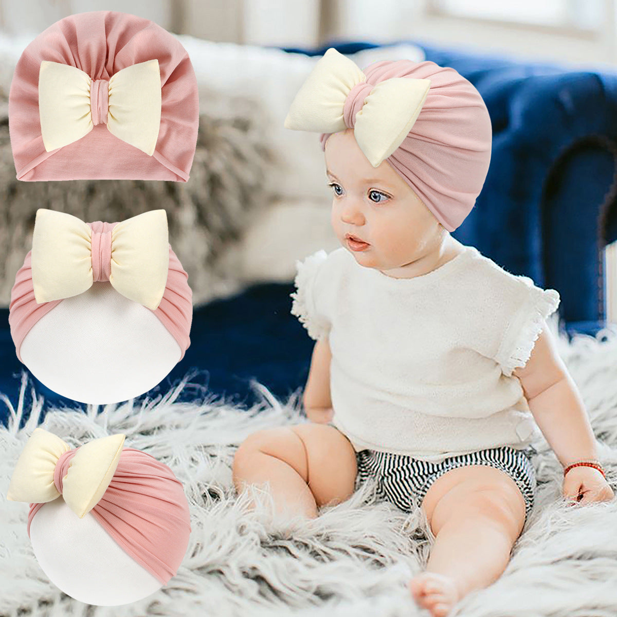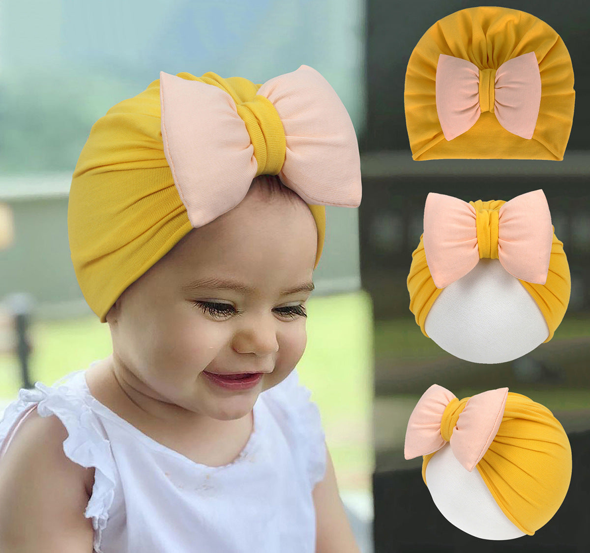 [Product Name]Children’s color-blocked fat bow hat 【Breaking News】YSMZ(B)319 【Color】9 colors S 头围34(0-June) 35-40CM M Head circumference 40 (6-36 months) 40-48CM [Weight]19.2g left and right 【Packaging】Independent opp bag