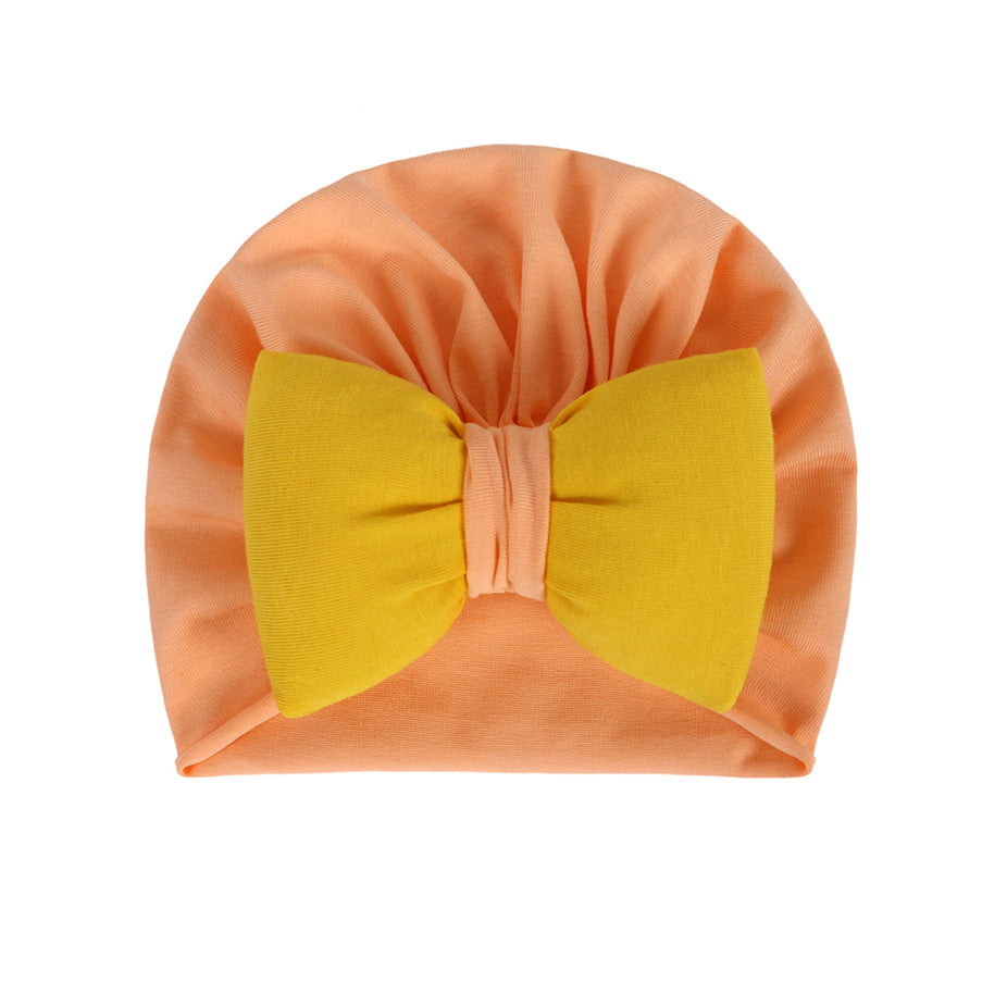 Class A pure cotton new baby hat newborn color matching fat bow pullover spring, summer and autumn cute baby hat
