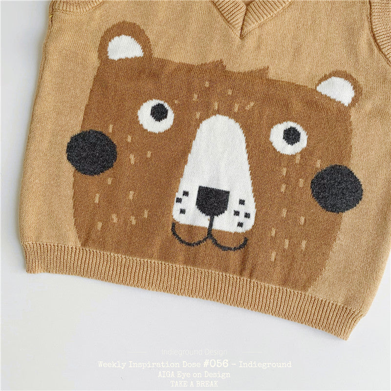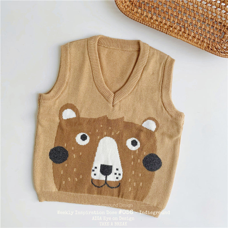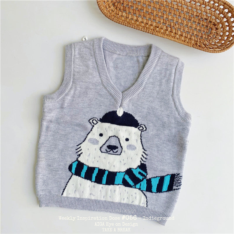 Clearance~Boys Vest Spring and Autumn Baby Knitted Sweater Baby Cotton Vest Cartoon Pullover Loose Vest
