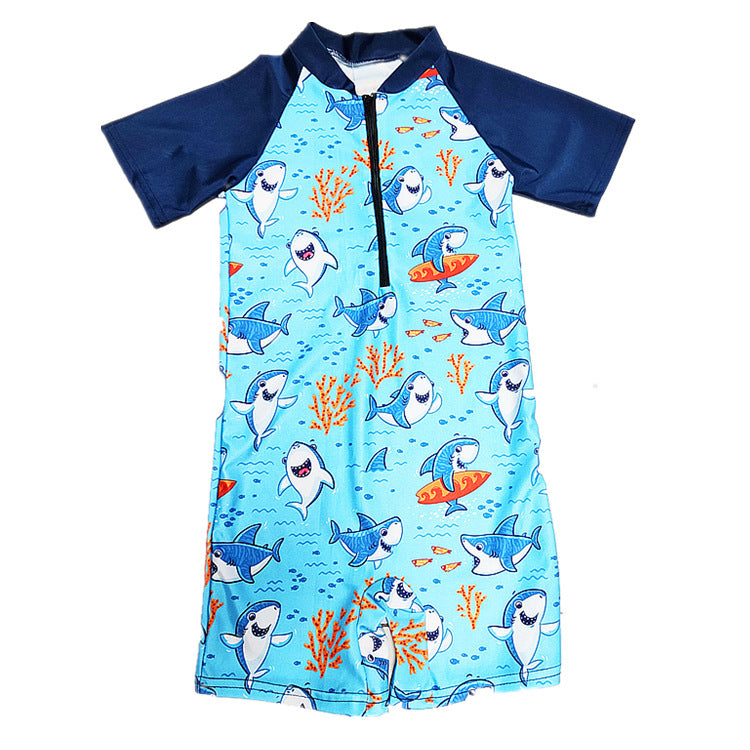 Foreign trade cartoon children's swimsuit cute boy swimsuit one-piece baby quick-drying small and medium-sized boy swimsuit romper