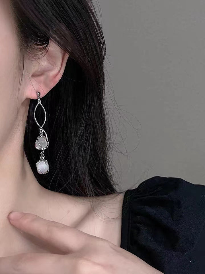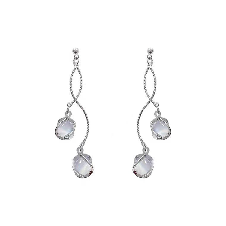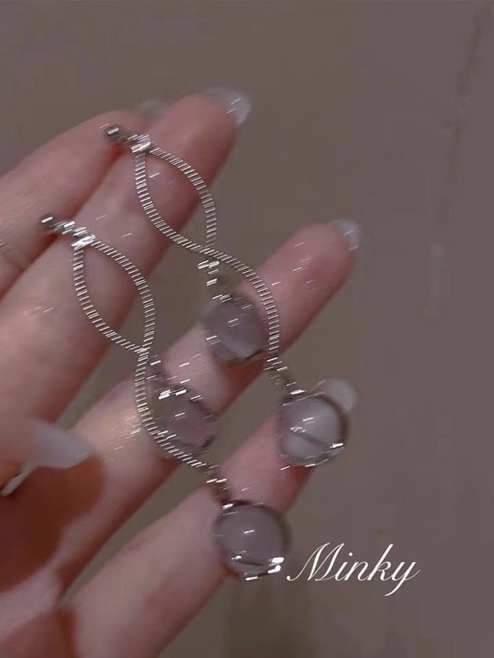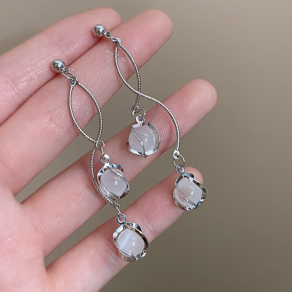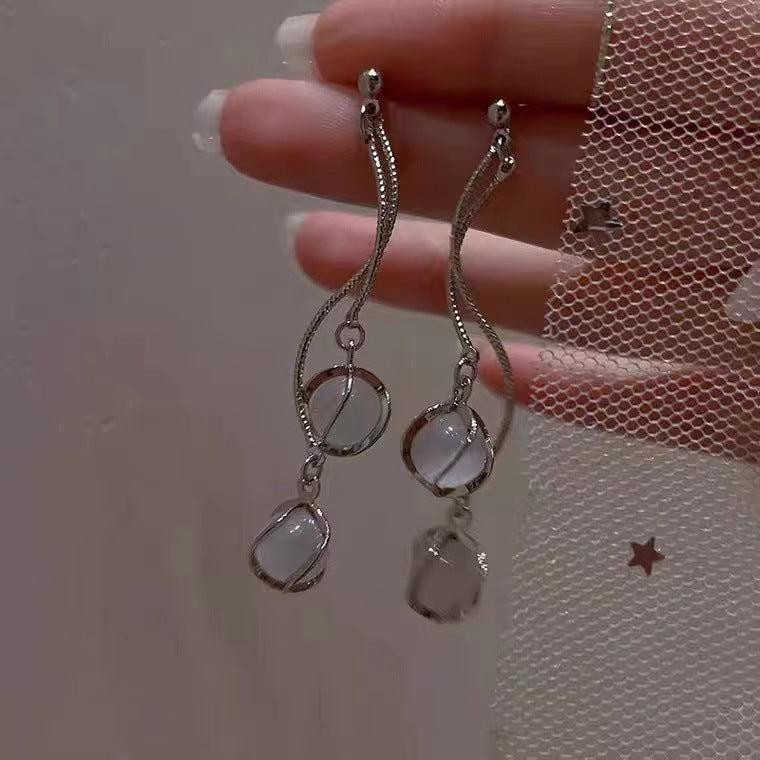 "Galaxy Girl" Tassel Long Earrings Ear Clips No Ear Piercing Women's Round Face Earrings High-end Opal Earrings