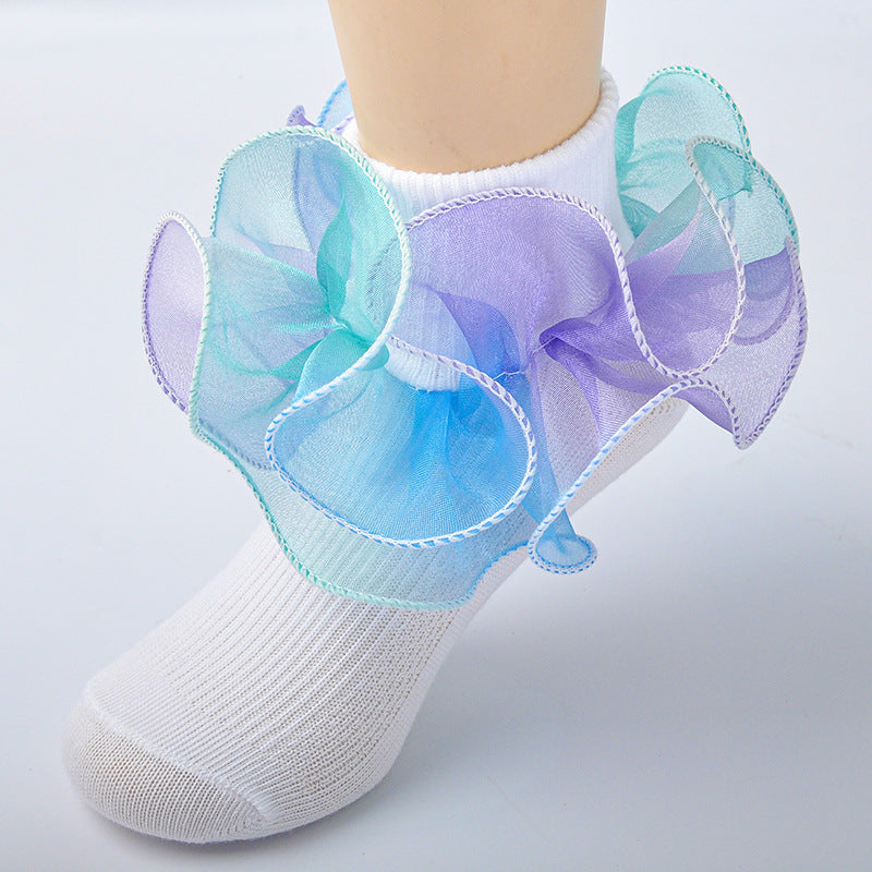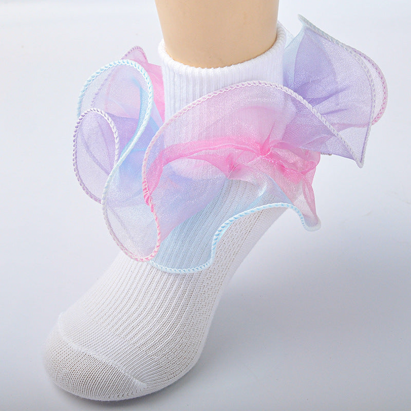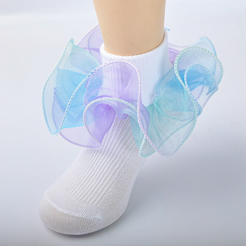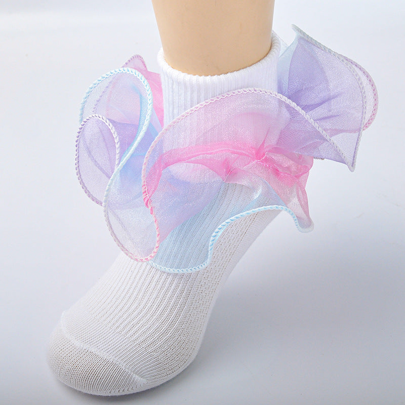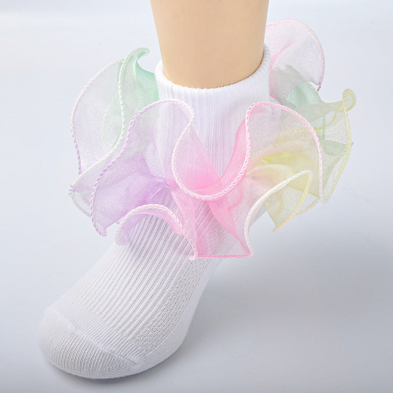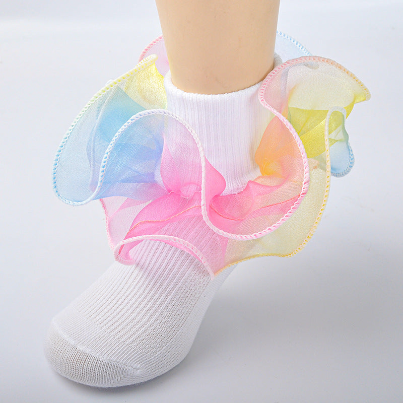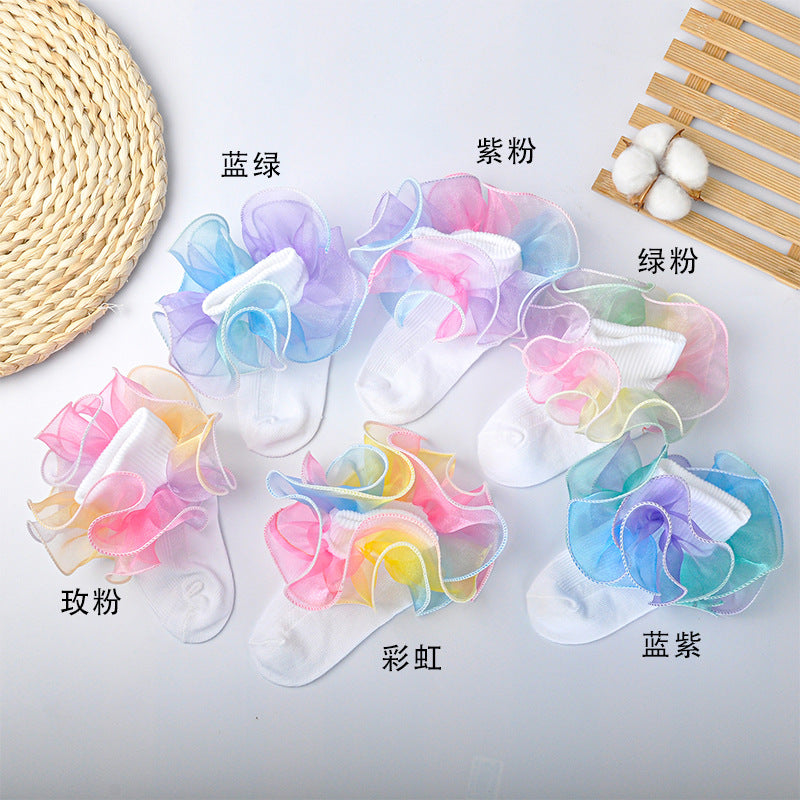 Girls cotton socks color gradient children's lace socks multicolored mesh lace children's baby socks baby socks
