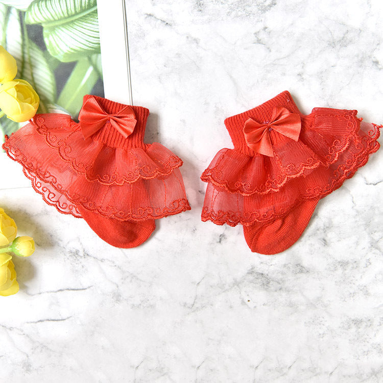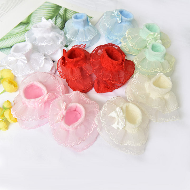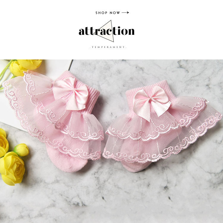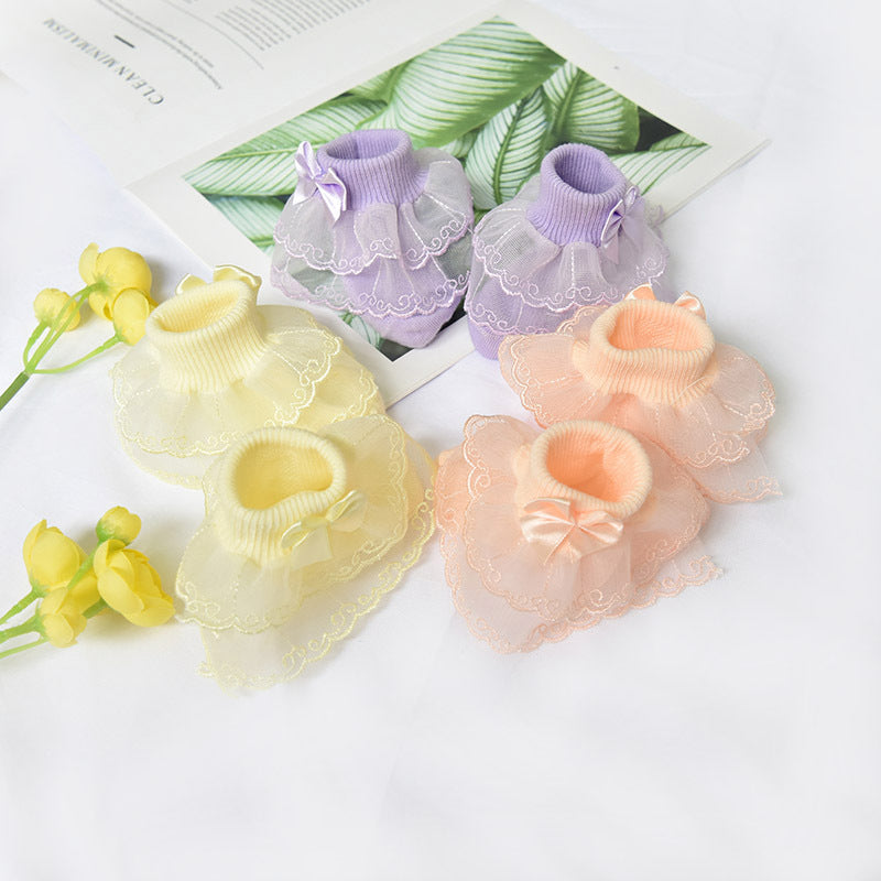 Girls lace socks spring and autumn thin section 0-1-8 years old baby baby cotton socks lace lace children's short socks