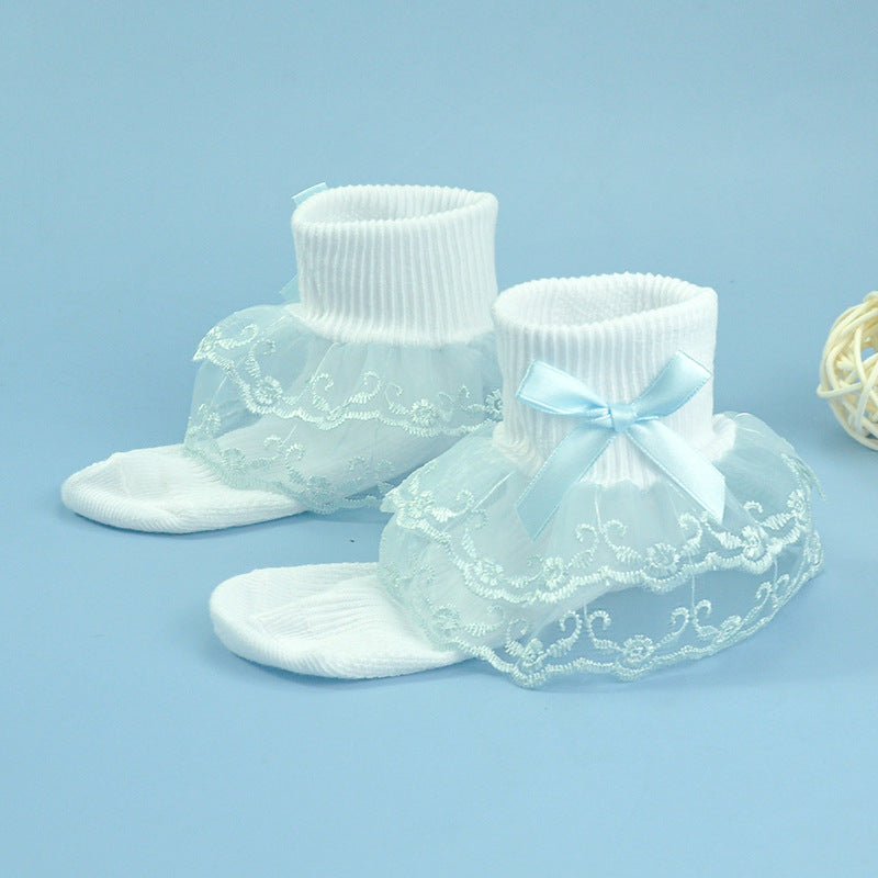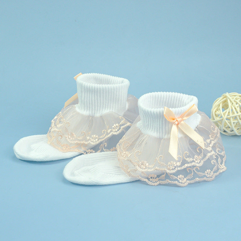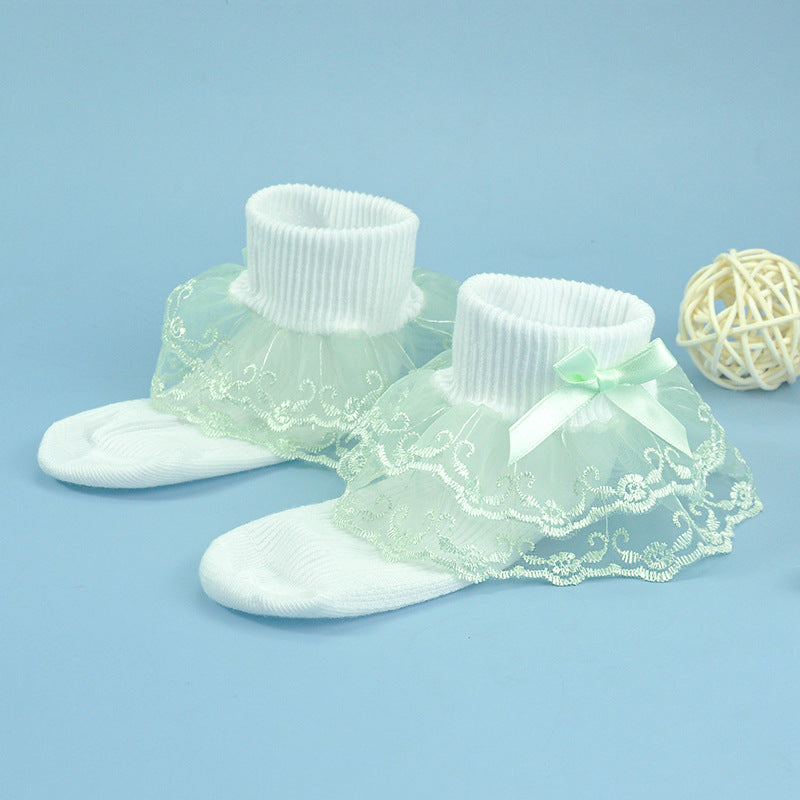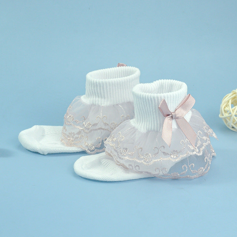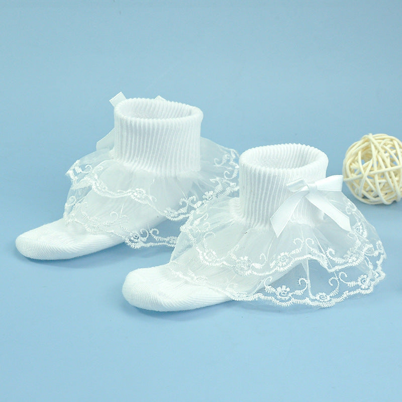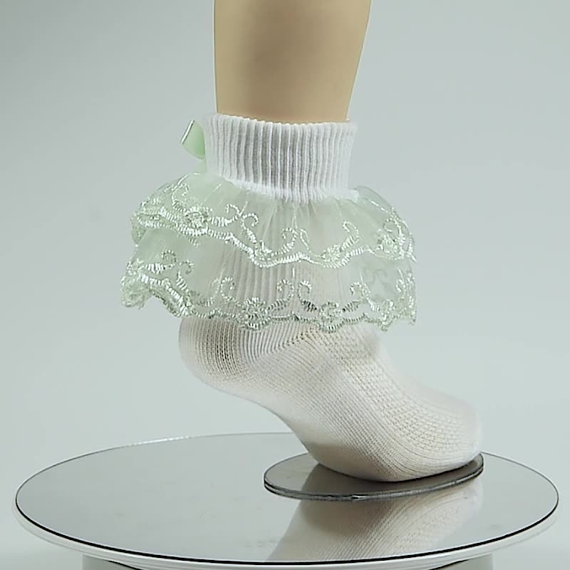Girls socks bow decoration double layer lace socks colorful lace jacquard children socks baby dance socks