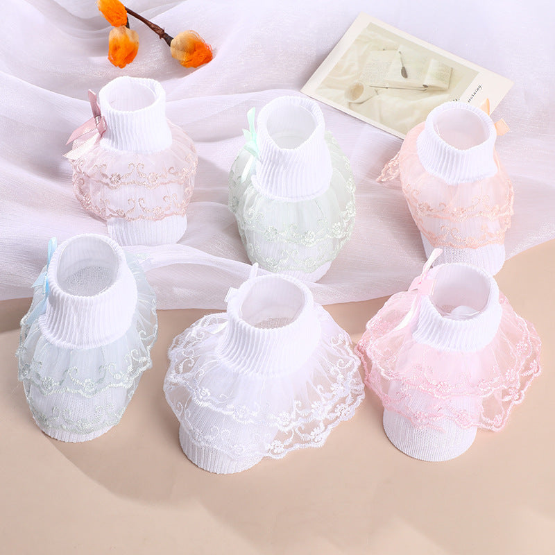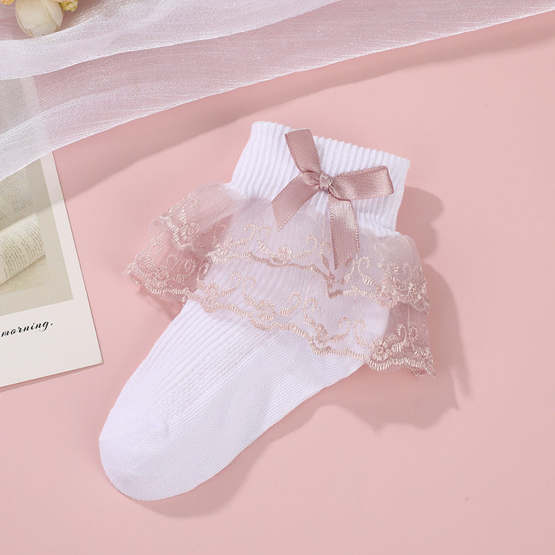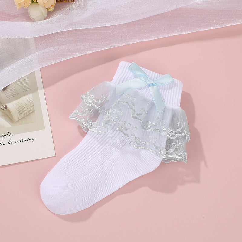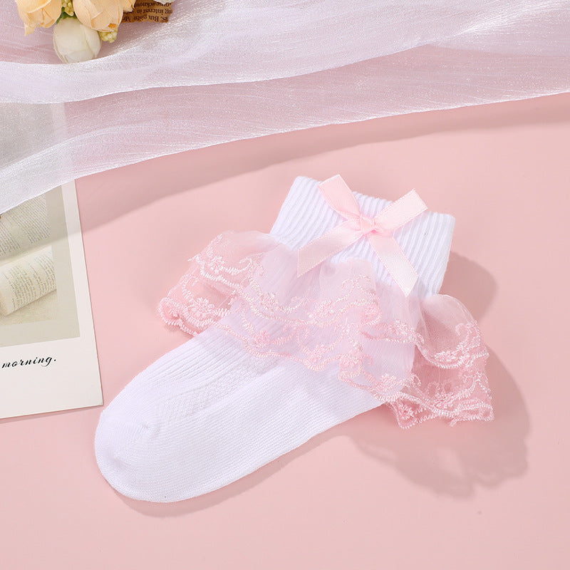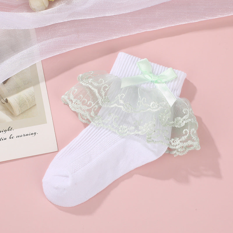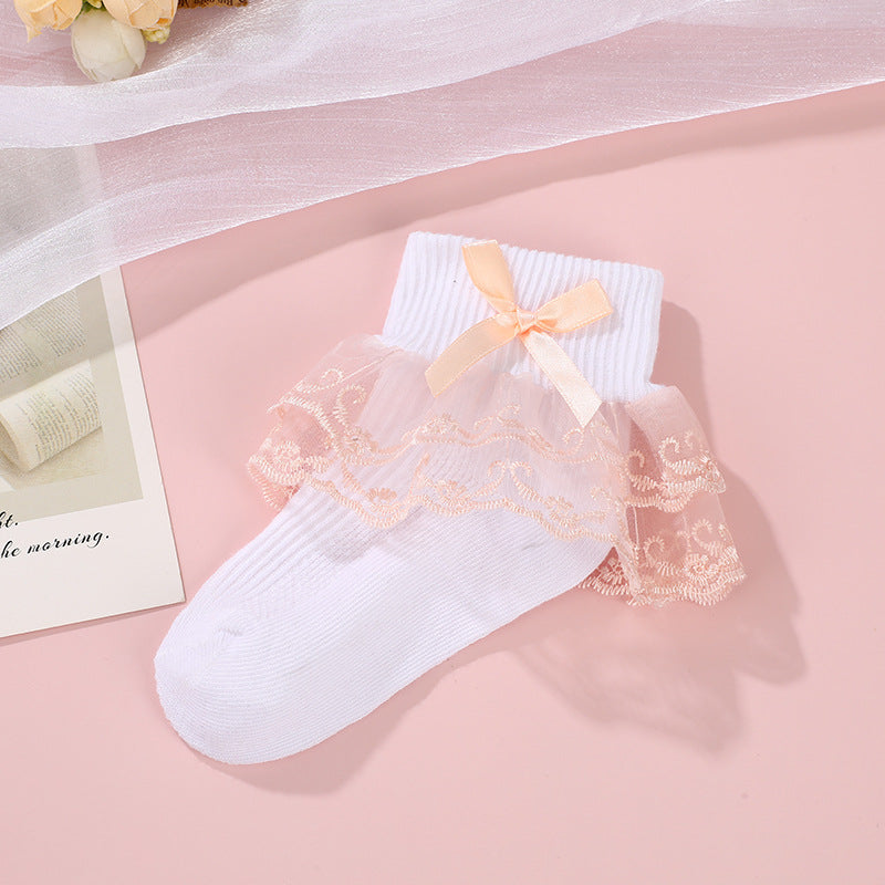 Girls socks color bow lace side tube socks light breathable soft baby cotton socks children baby socks