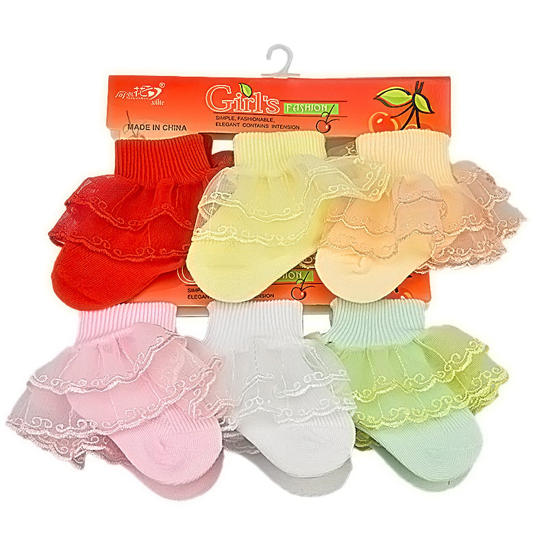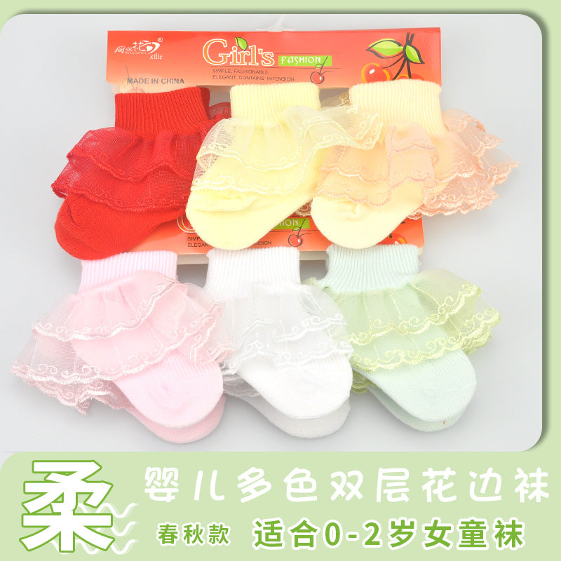 Girls socks multi-color double layer lace baby socks embroidery lace edge baby socks breathable soft children's socks