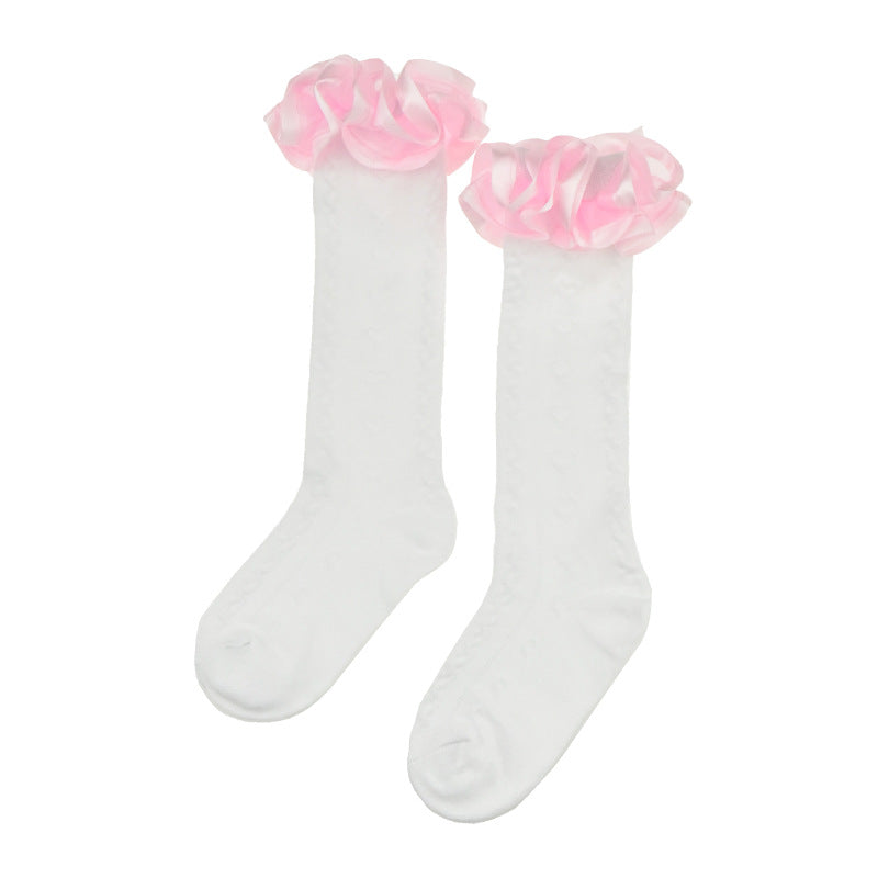Girls socks spring and autumn children's cotton socks infant baby socks lace princess three-dimensional large lace pile socks