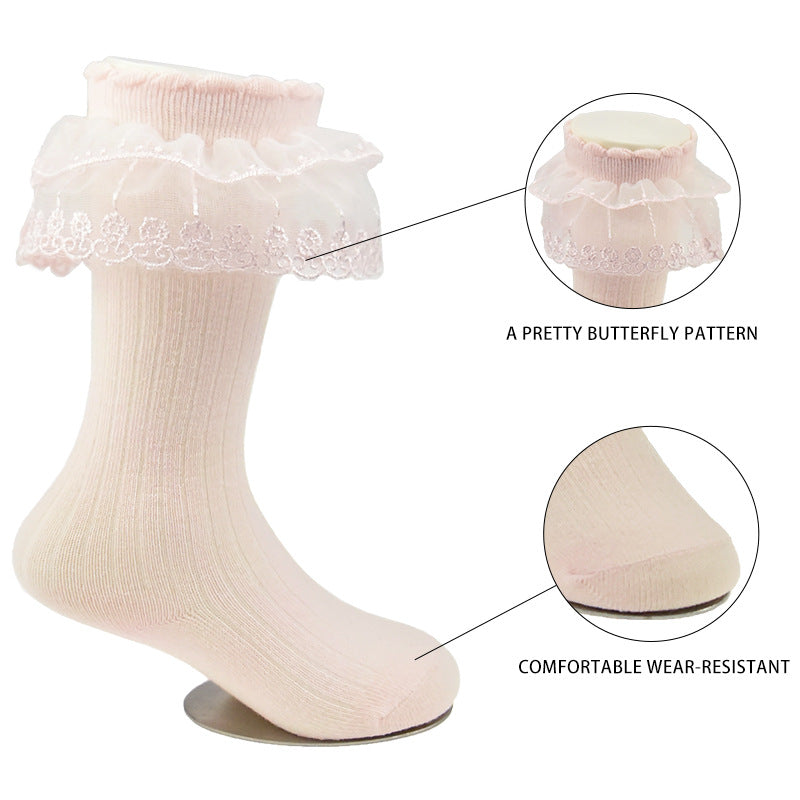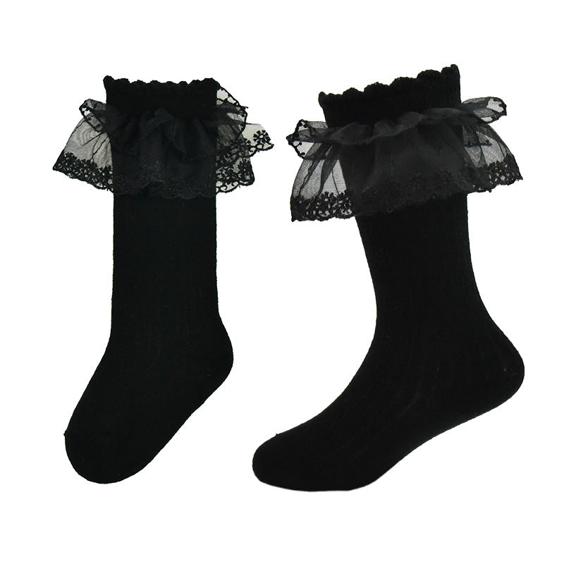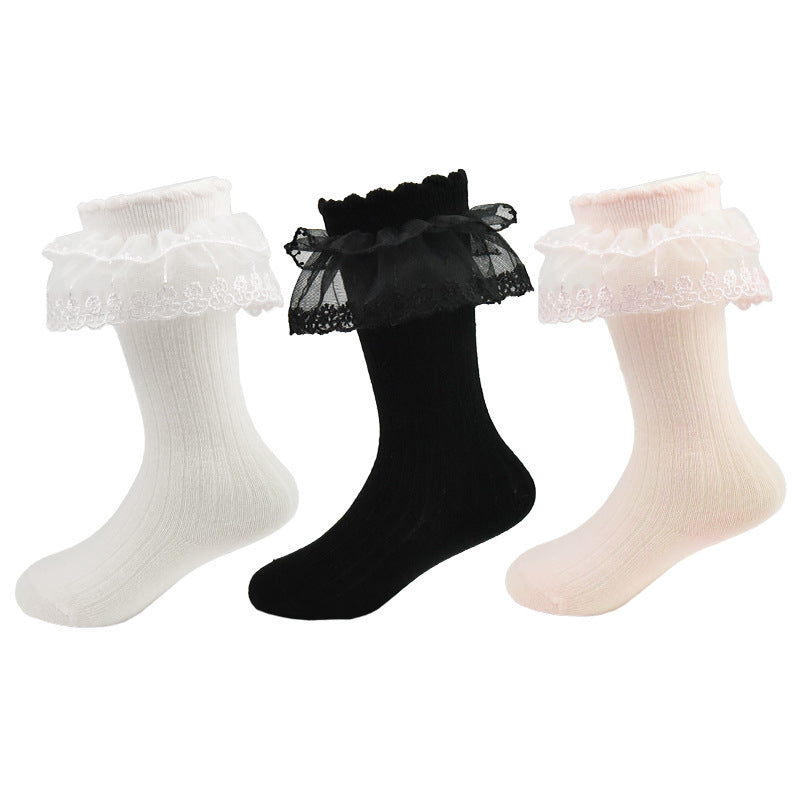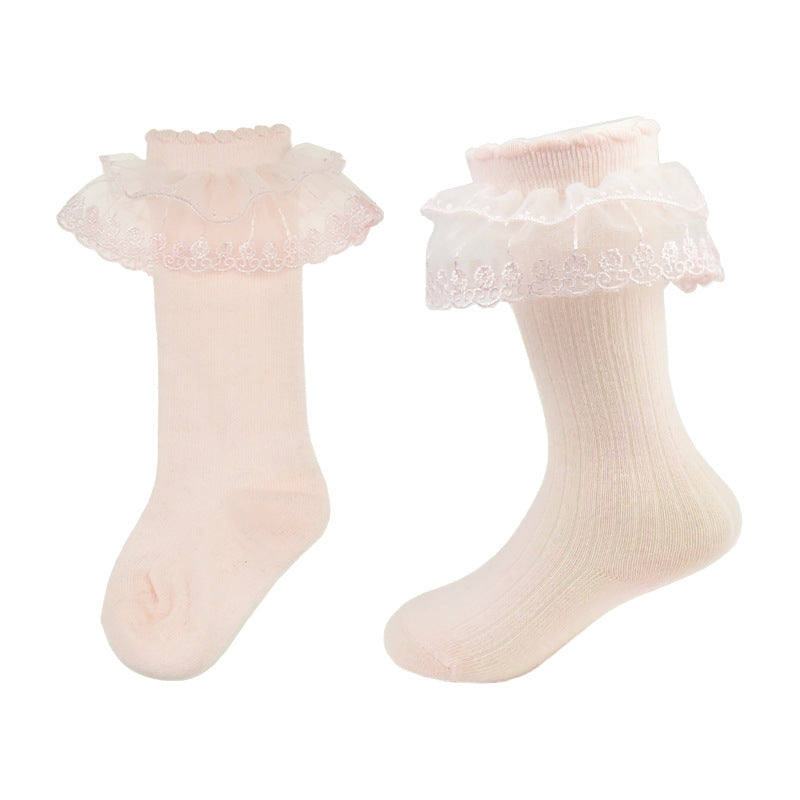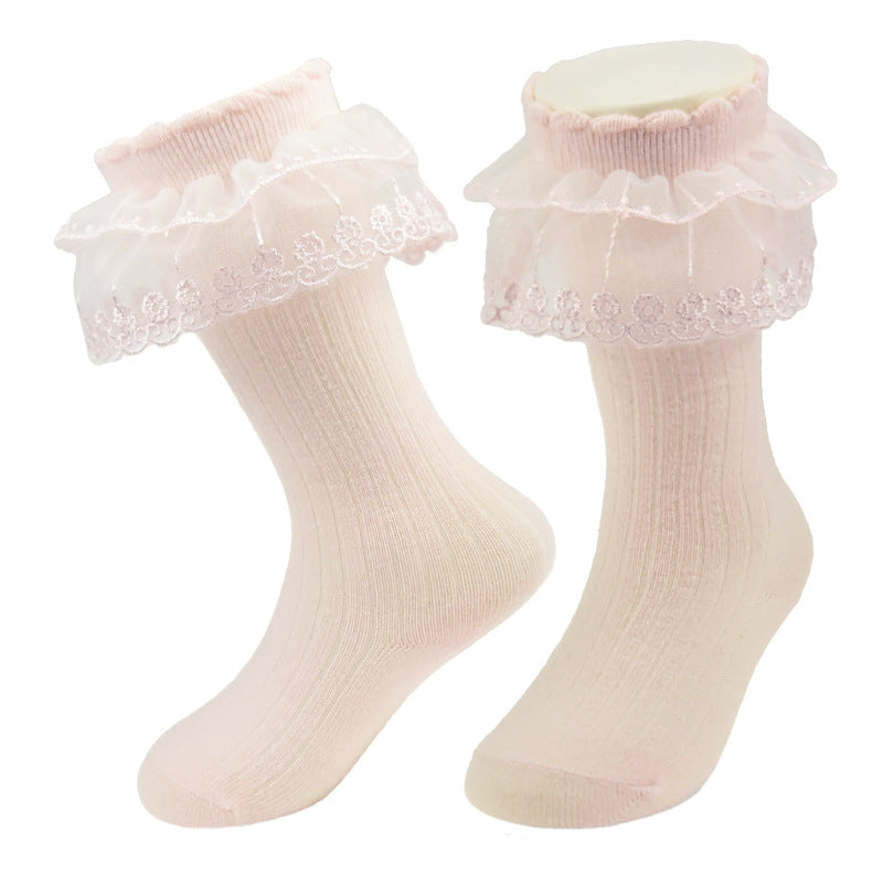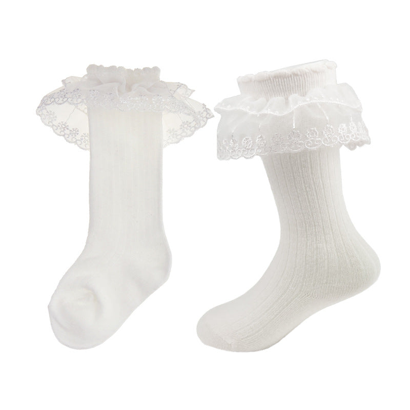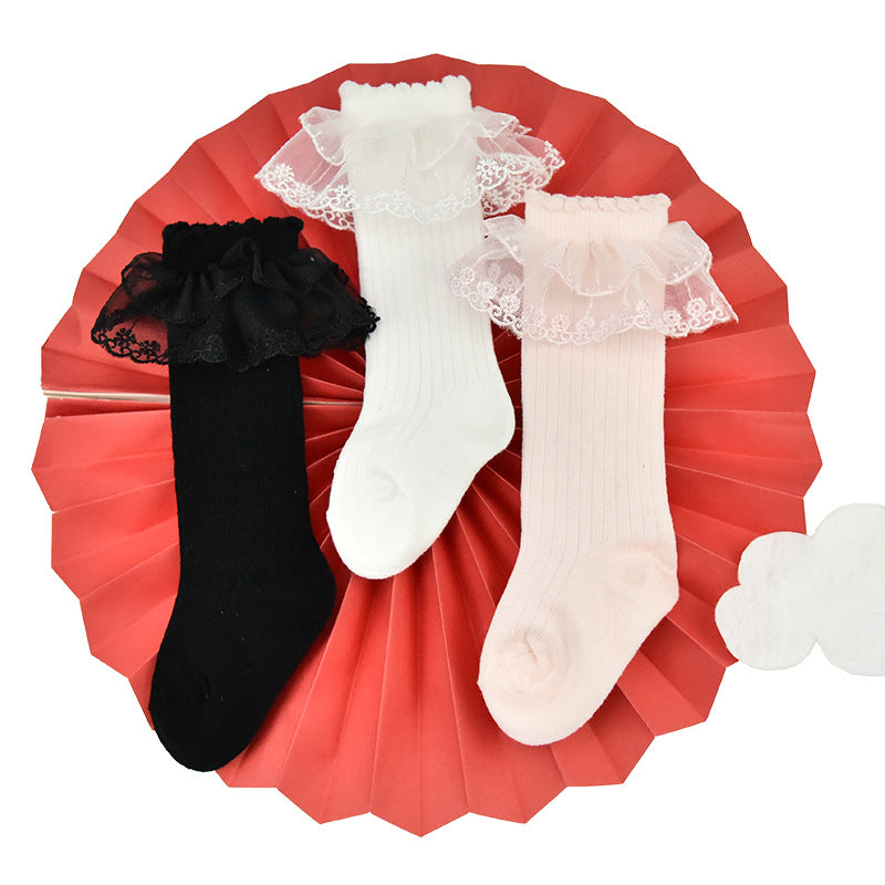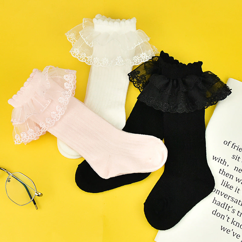 Girls socks spring and autumn pure color lace princess pile socks children baby calf socks infant cotton socks