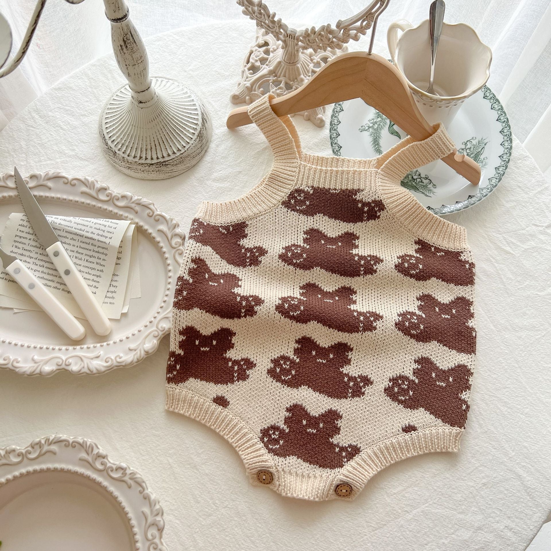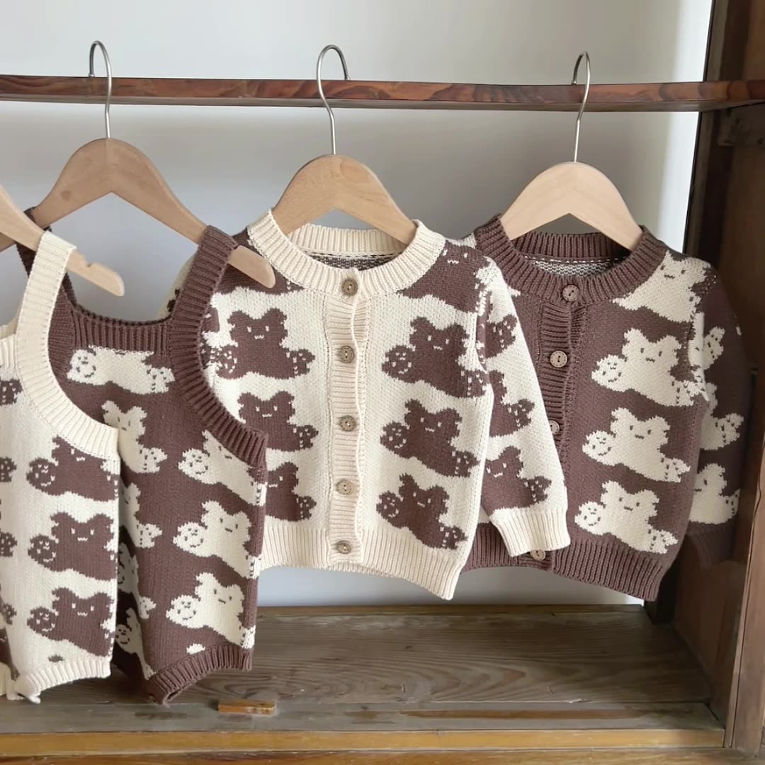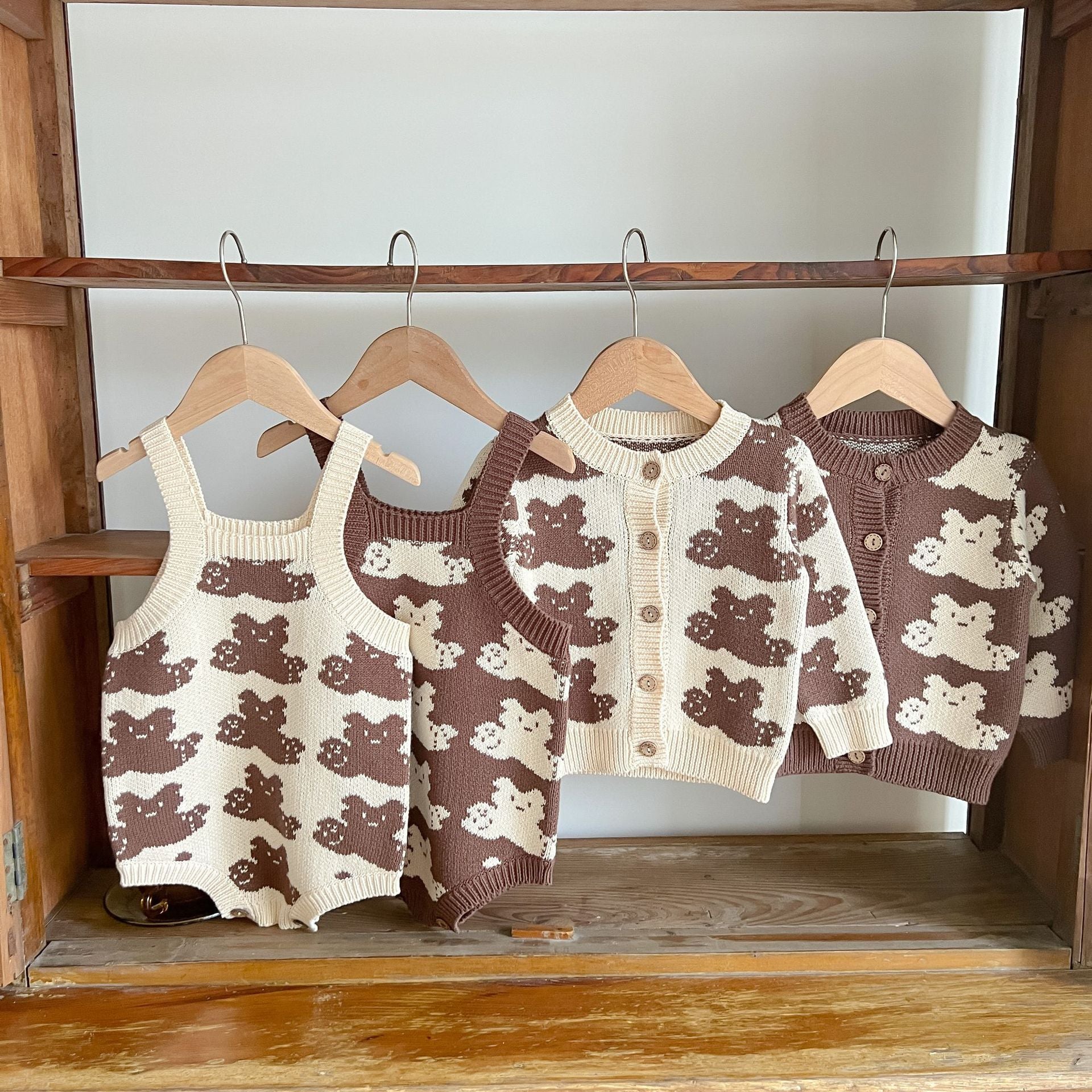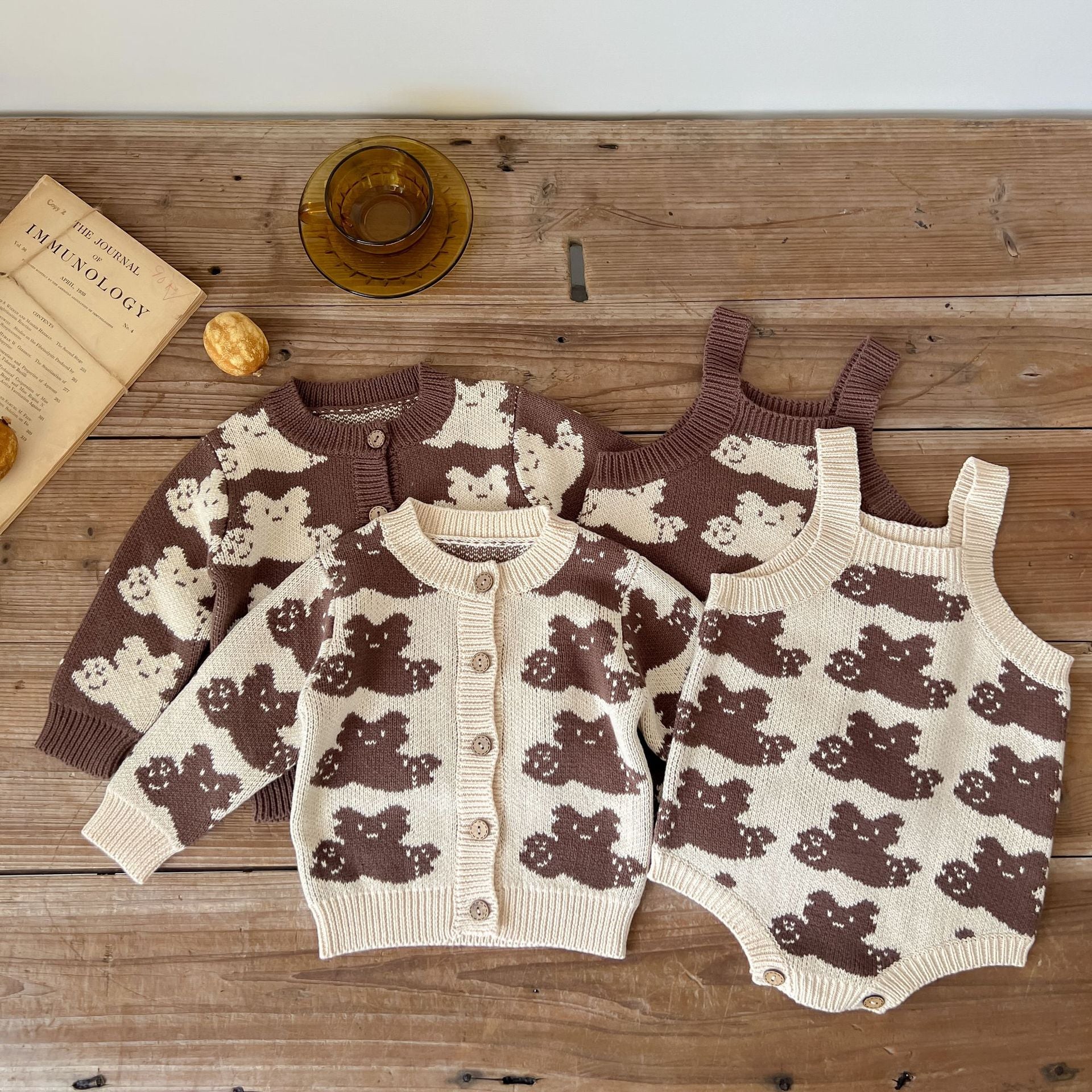 ins2022 autumn and winter baby clothes cute cartoon wool romper sleeveless romper + baby sweater cardigan jacket